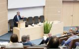 Następnie przewodniczący RDN wygłosił wykład na temat dobrych praktyk w postępowaniach w sprawie nadania stopnia doktora, doktora habilitowanego oraz tytułu profesora.