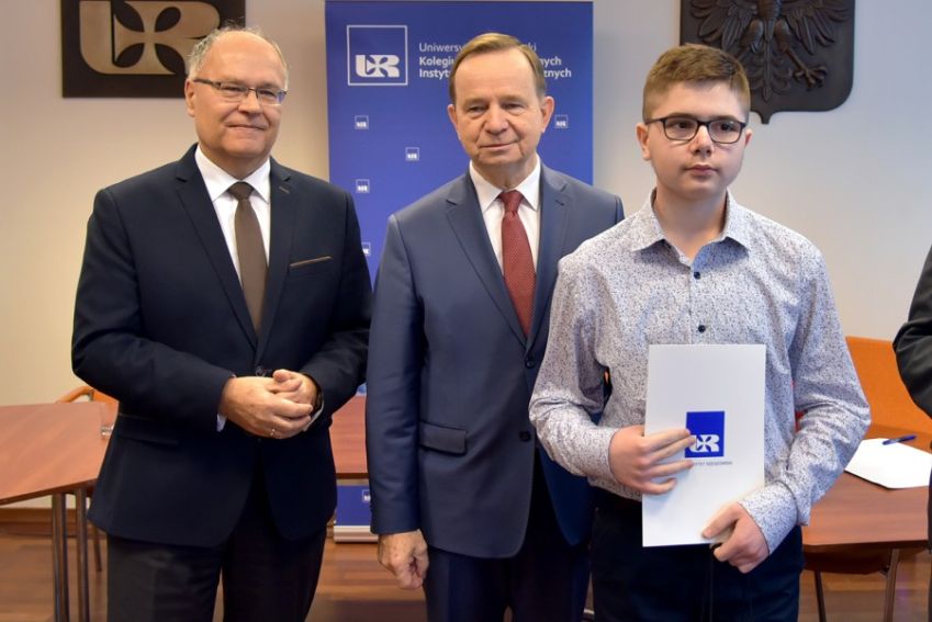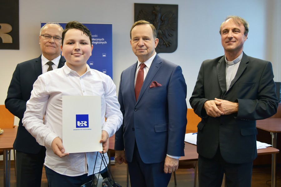 Nagrody wręczali: Jego Magnificencja prof. dr hab. Sylwester Czopek, rektor Uniwersytetu Rzeszowskiego, Władysław Ortyl, marszałek Województwa Podkarpackiego i ks. dr hab. Witold Jedynak, prof. UR, dyrektor INS.