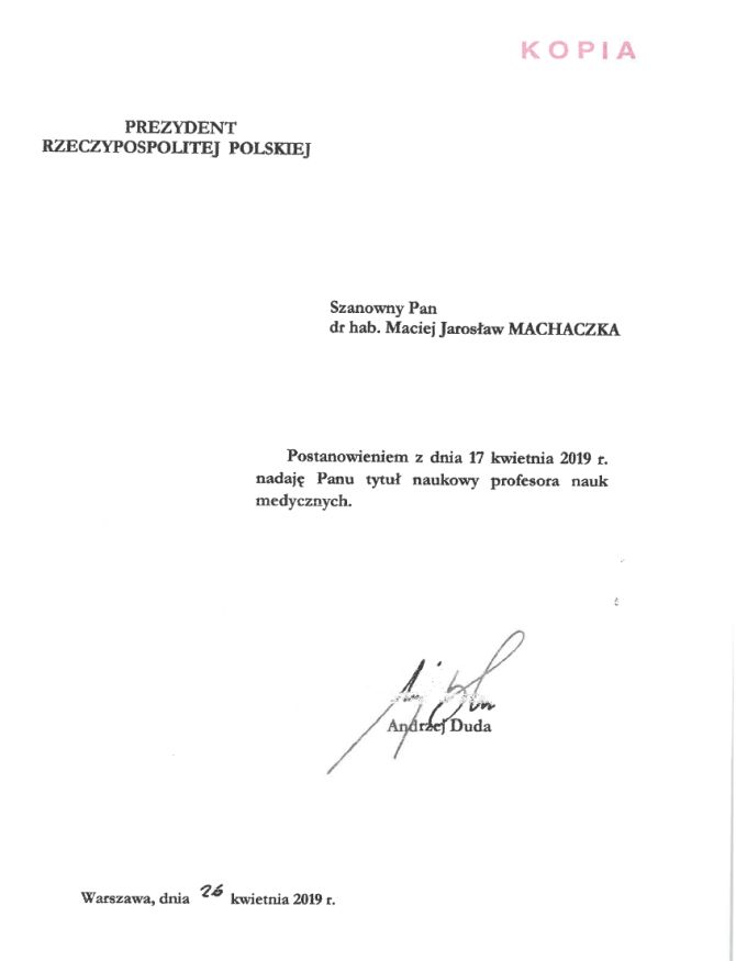 Nominacja profesorska dla dra hab. Macieja Machaczki