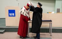 Senator Senior – prof. dr hab. Józef Gorzelany nałożył Rektorowi: łańcuch i biret oraz wręczył berło i pierścień.