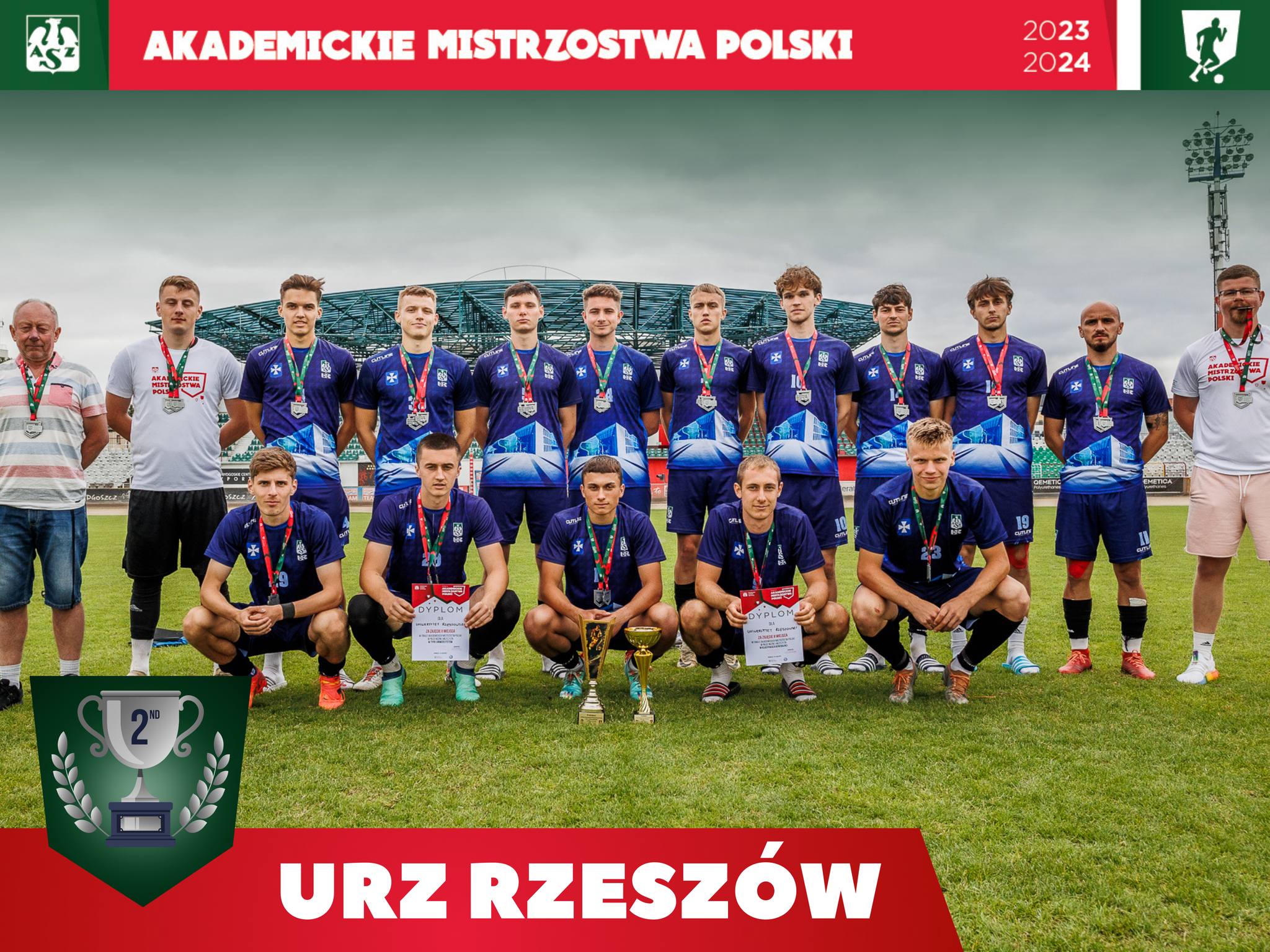 Drużyna piłkarzy Uniwersytetu Rzeszowskiego sięgnęła po srebrny medal w Akademickich Mistrzostwach Polski w piłce nożnej, które odbywały się w Bydgoszczy w dniach 16-19.06.2024 r. W finale ekipa UR prowadzona przez trenera Wiesława Gołdę musiała uznać wyższość drużyny Uniwersytetu Jana Długosza z Częstochowy. Po emocjonujących rzutach karnych.