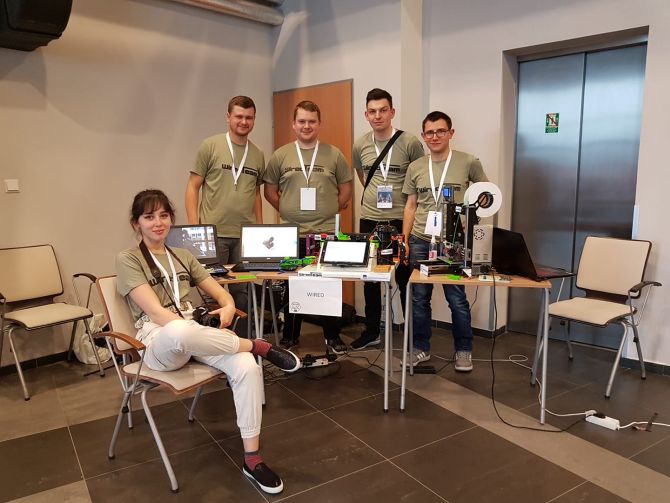 Jesteśmy ekipą, która od trzech lat zajmuje się tworzeniem i udoskonalaniem projektów z zakresu robotyki, mechatroniki oraz programowania. Wystartowaliśmy w konkurencji Freestyle z projektem składającym się z: skanera 3D, drukarki 3D, manipulatora, magazynku z czujnikiem koloru i taśmociągu sterowanych za pomocą autorskiej aplikacji WiredOS.