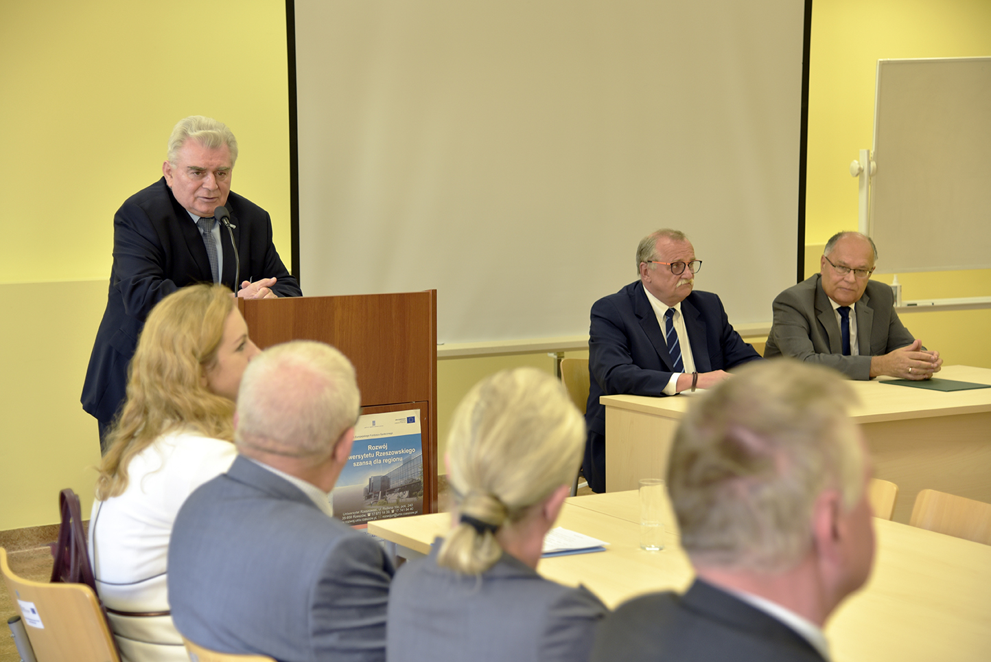 W uroczystym otwarciu uczestniczyli: prof. dr hab. Sylwester Czopek, Rektor Uniwersytetu Rzeszowskiego, dr hab. Grzegorz Ślusarz, prof. UR, Prorektor ds. Kolegium Nauk Społecznych, Przewodniczący Zgromadzenia Ogólnego Krajowej Rady Spółdzielczej – dr Jerzy Jankowski oraz pracownicy związani zarówno z Uniwersytetem, jak również KRS.