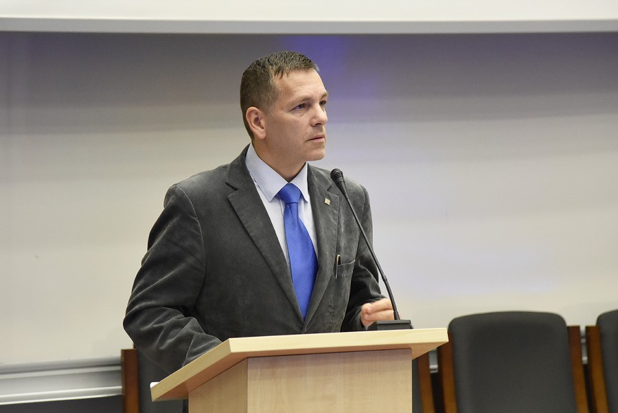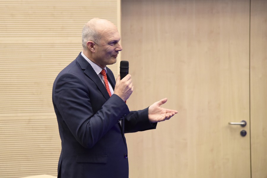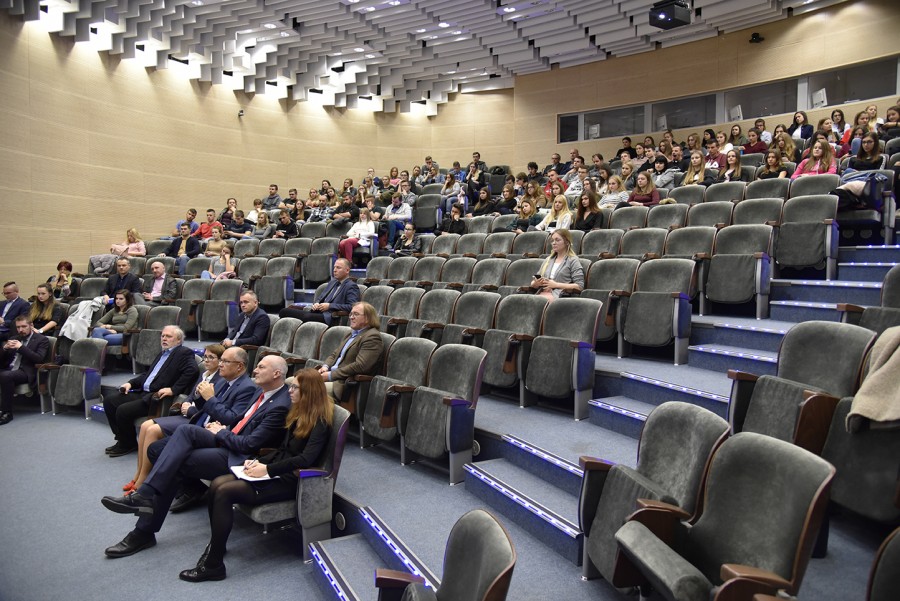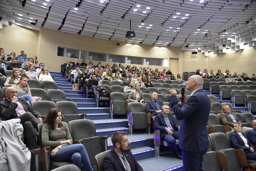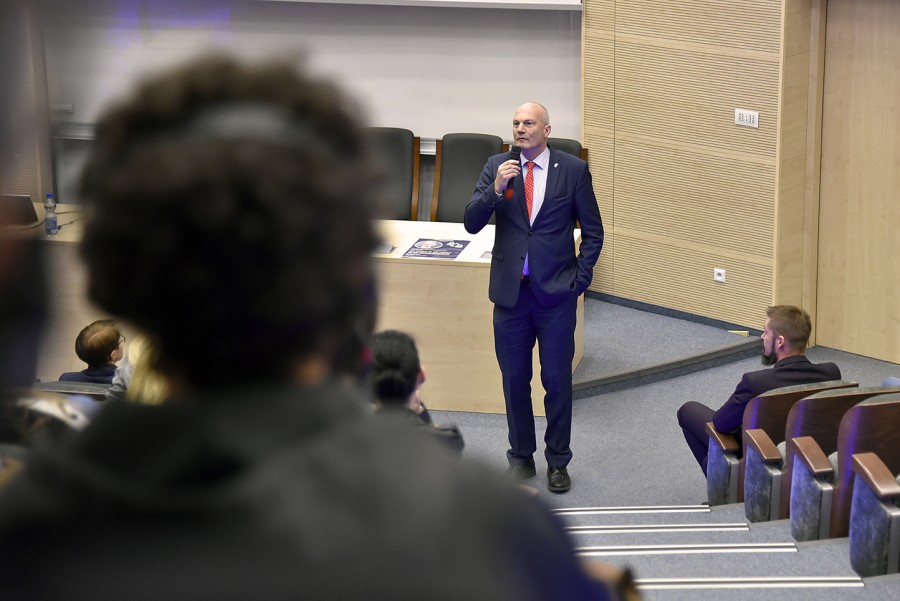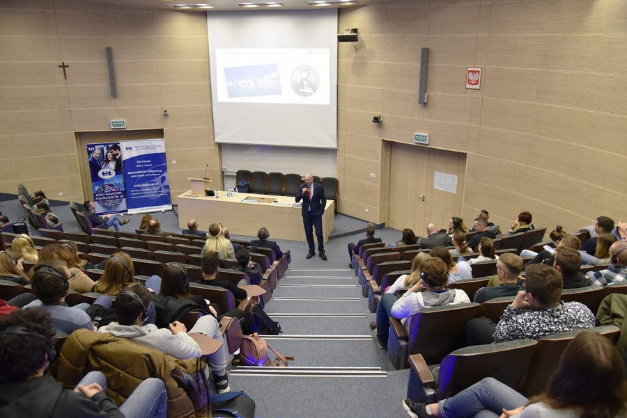 Wykład odbył się w języku angielskim z tłumaczeniem symultanicznym na język polski, które przeprowadził mgr Jerzy Hogendorf – pracownik Centrum Języków Obcych UR.