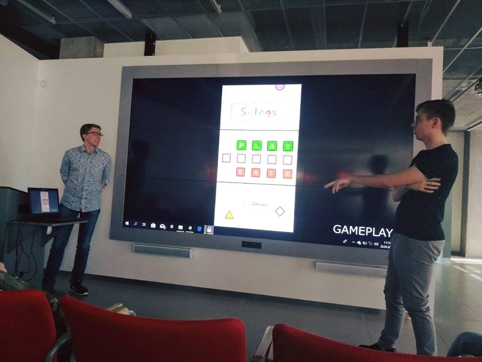 Skład zespołu projektowego: Szymon Kusiak oraz Mateusz Molik. Gra Siblings to gra logiczna dedykowana pod urządzenia mobilne w której gracz pod presją czasu zmaga się z rozwiązaniem łamigłówki. Podczas rozgrywki dysponuje figurami geometrycznymi (kwadraty, trójkąty, romby oraz okręgi) których własności musi wykorzystać do rozwiązania łamigłówki. Na chwilę obecną w grze jest dostępne 25 łamigłówek.