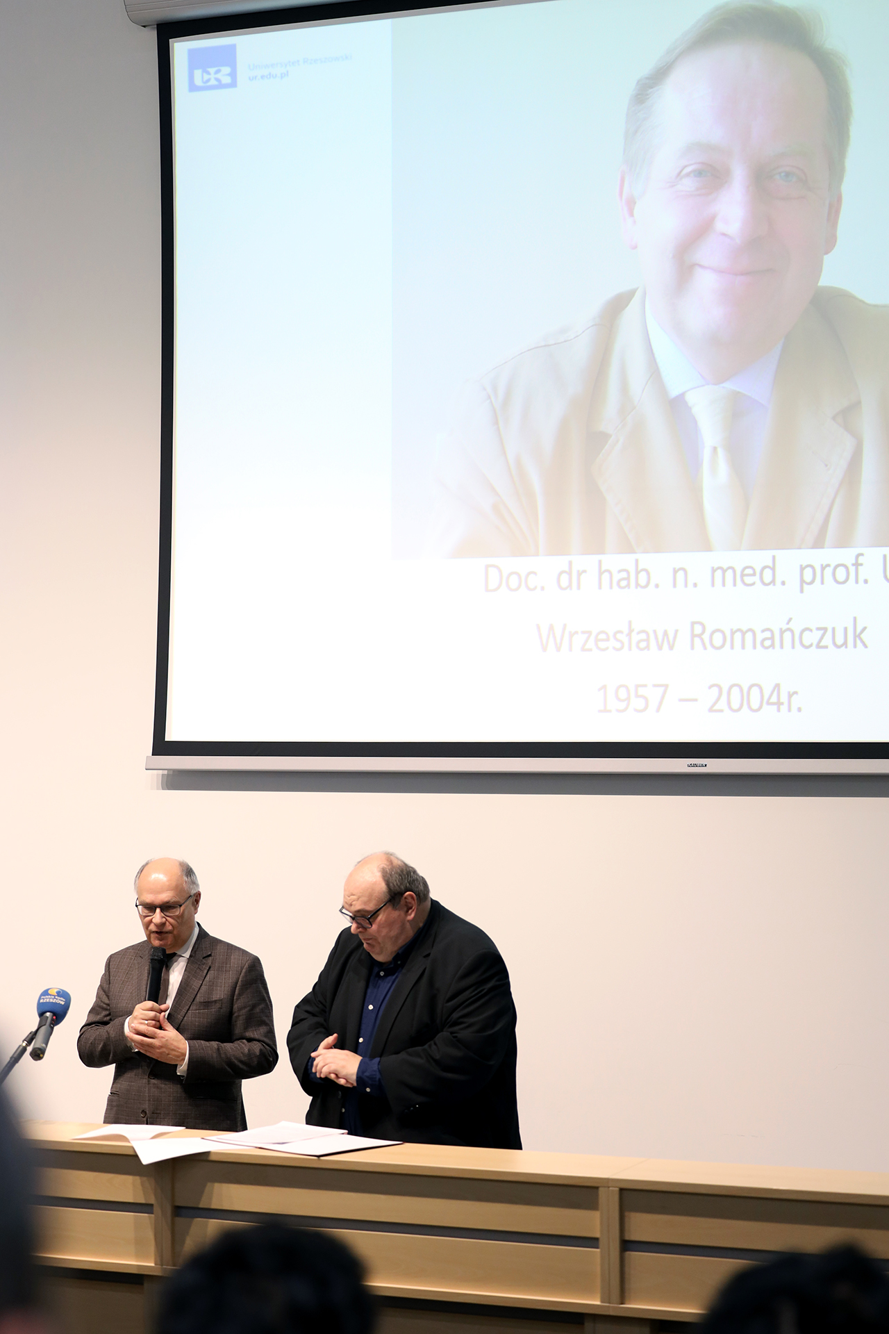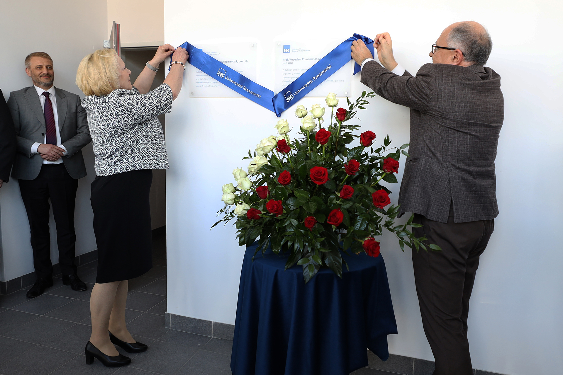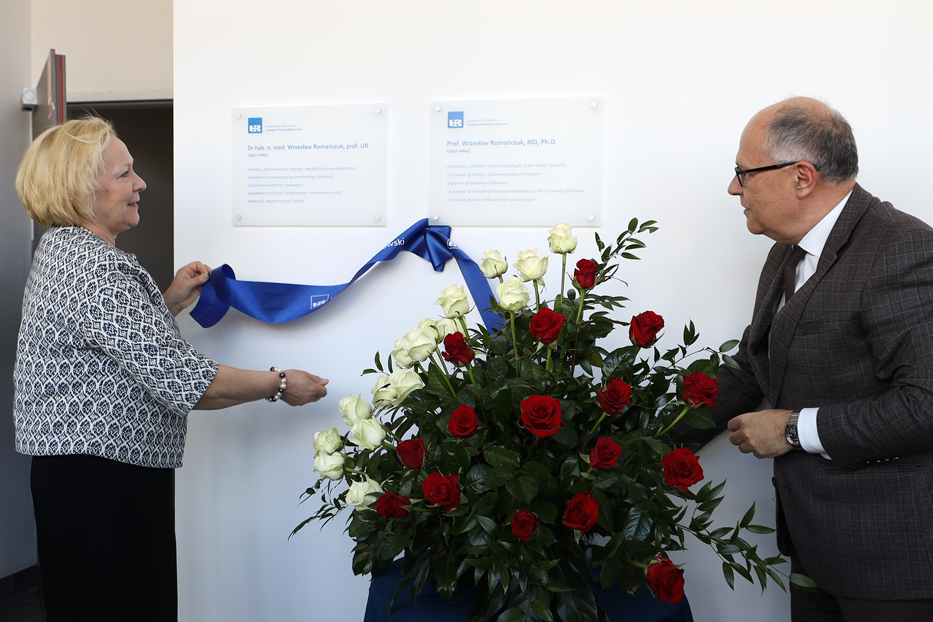 Odsłonięcie tablicy pamiątkowej poświęconej dr hab. n. med. Wrzesławowi Romańczukowi, prof. UR jest uhonorowaniem wieloletniej pracy lekarskiej i zasług na rzecz Uniwersytetu Rzeszowskiego.