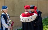Chór wykonał tradycyjne „Gaudeamus Igitur”, po czym JM Rektor powiedział – „Serdecznie dziękuję wszystkim promotorom za trud włożony w okresie sprawowania opieki nad doktorami i za udział w dzisiejszej uroczystej promocji. Doktorom życzę dalszego rozwijania swoich zainteresowań naukowych i wszelkiej pomyślności w życiu zawodowym i osobistym.”