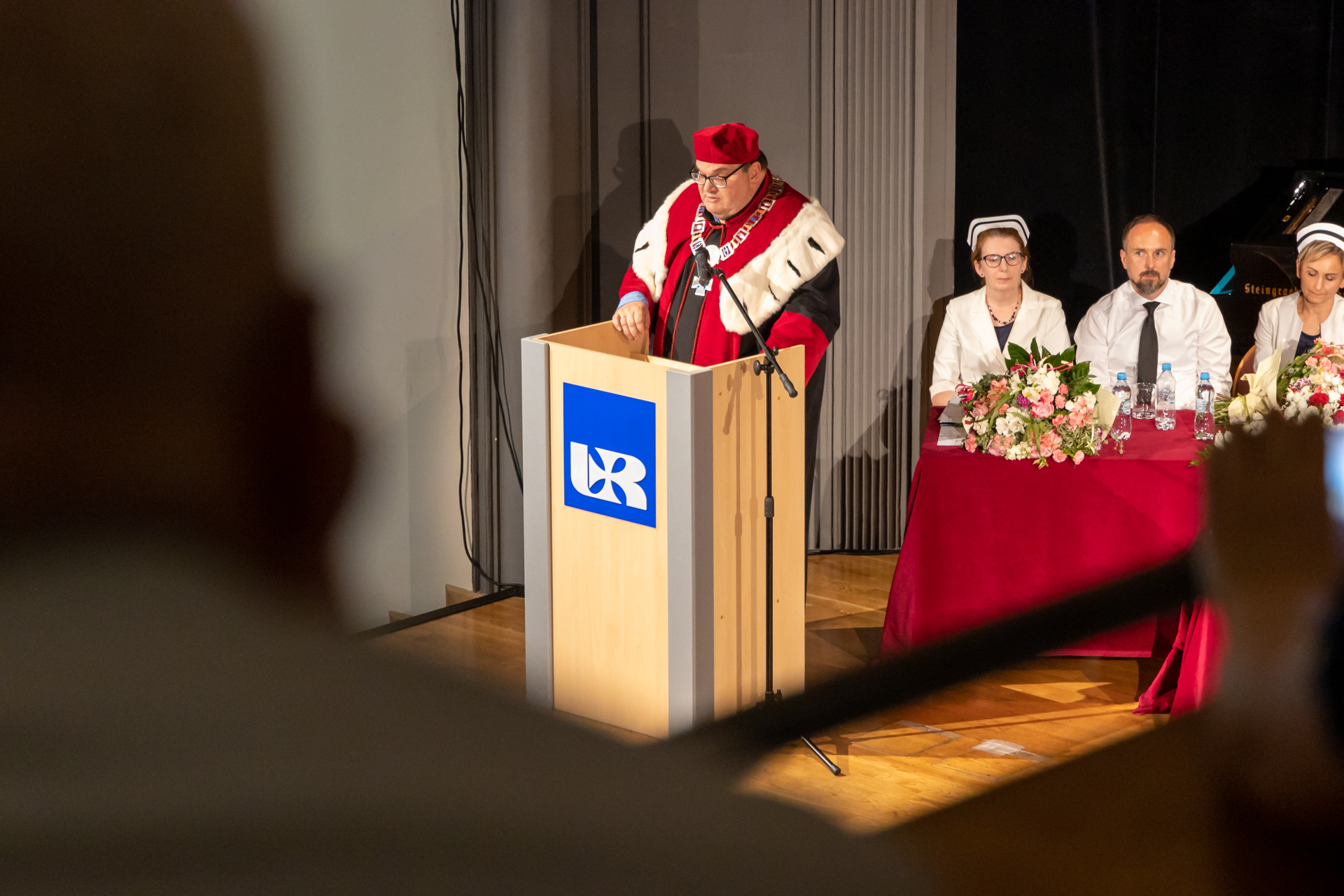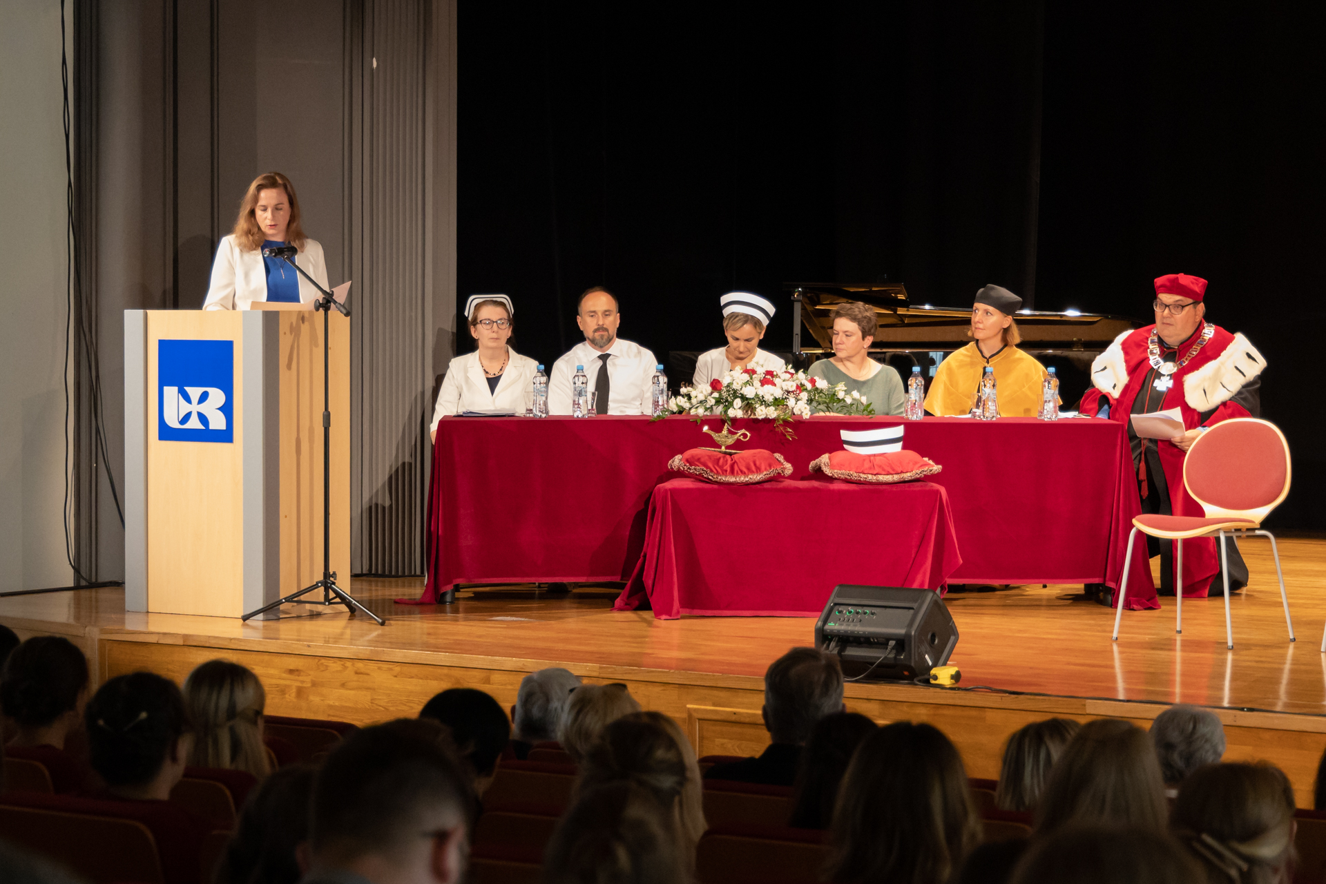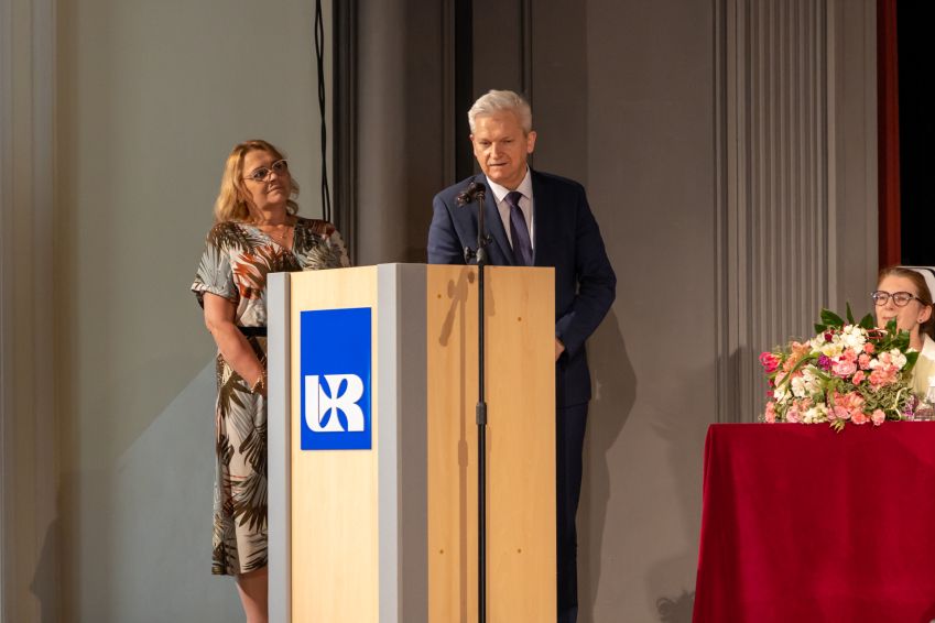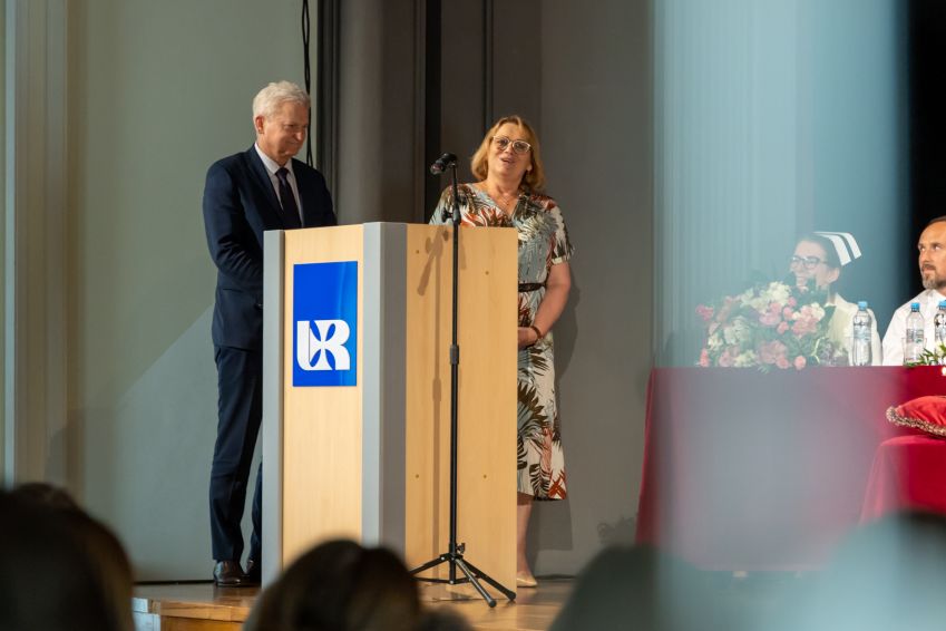 Ceremonię uroczystego wręczenia symbolicznego czepka pielęgniarskiego w Uniwersytecie Rzeszowskim otworzyła Pani Prorektor ds. Studenckich i Kształcenia - dr hab. Elżbieta Rokosz oraz Prorektor ds. Kolegium Nauk Medycznych – prof. dr hab. n.med. Artur Mazur, który powitał przybyłych gości.