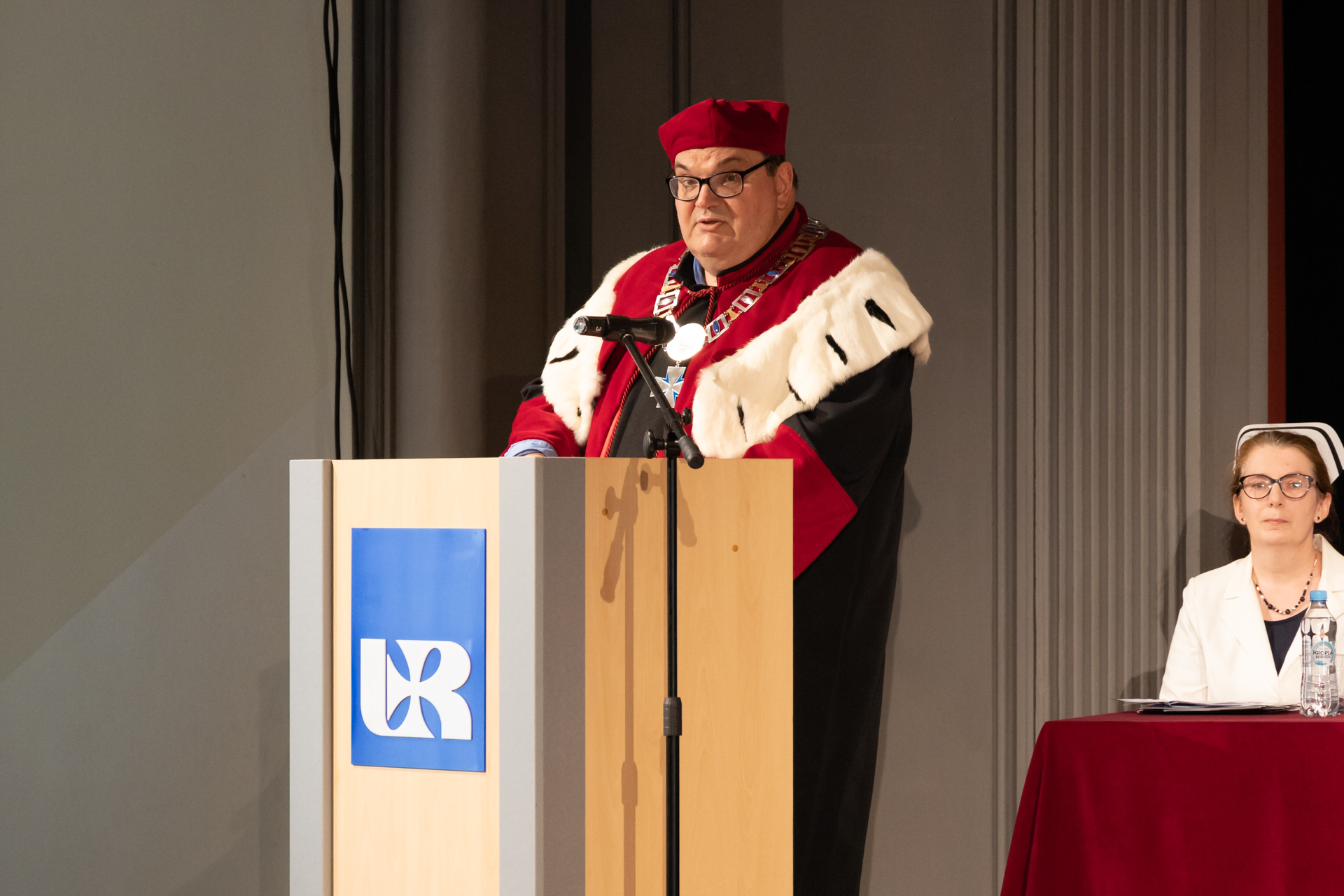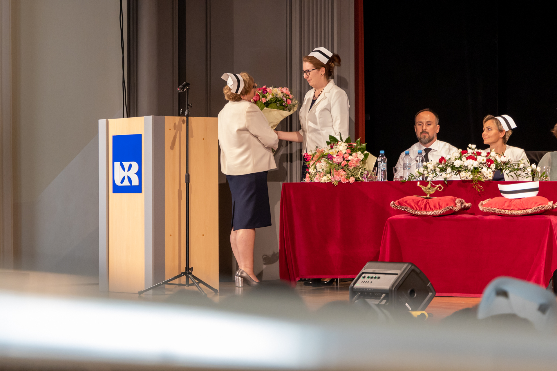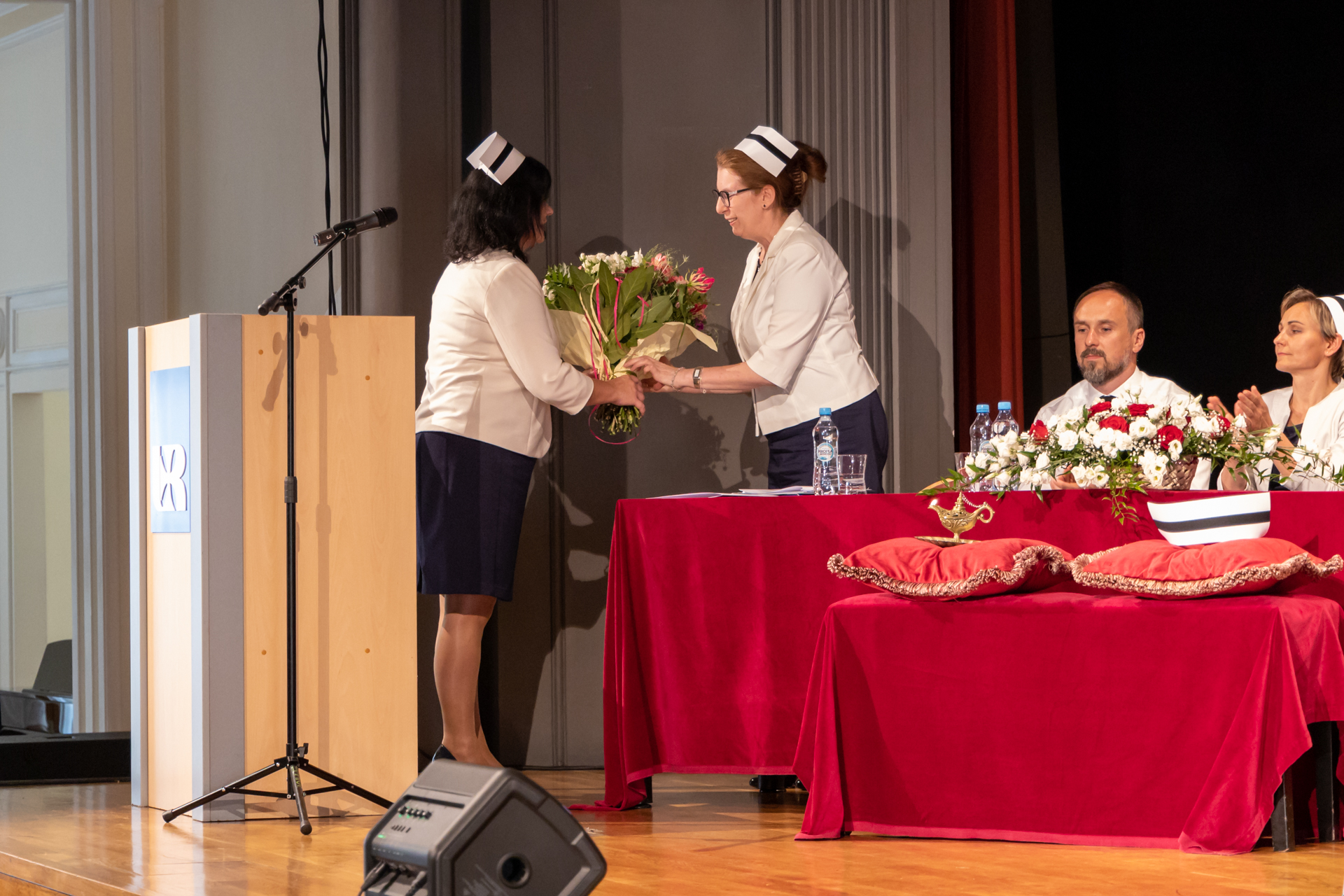 Ceremonię uroczystego wręczenia symbolicznego czepka pielęgniarskiego w Uniwersytecie Rzeszowskim otworzyła Pani Prorektor ds. Studenckich i Kształcenia - dr hab. Elżbieta Rokosz oraz Prorektor ds. Kolegium Nauk Medycznych – prof. dr hab. n.med. Artur Mazur, który powitał przybyłych gości.