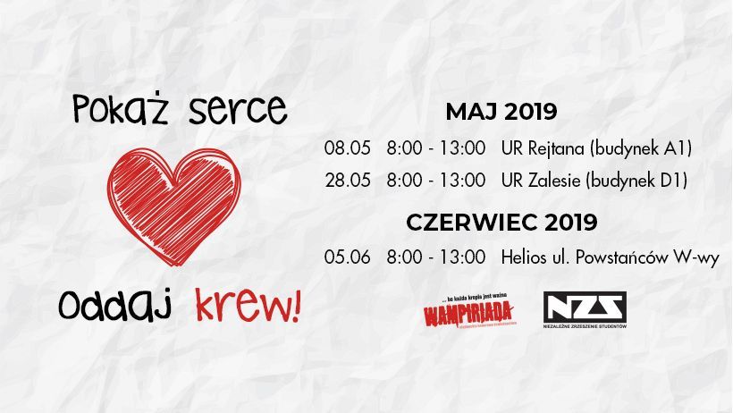 Wydarzenie organizowane jest przez Niezależne Zrzeszenie Studentów - to największa Polska organizacja studencka, która działa już od ponad 30 lat. Zrzesza ponad 1000 aktywnych członków w całym kraju, realizujących szereg inicjatyw społecznych zarówno o charakterze regionalnym jak i ogólnokrajowym. Nasz oddział przy UR jest prężnie działającą jednostką, zrzeszającą ludzi ambitnych, pełnych pasji oraz pomysłów. Zajmujemy się realizacją wielu przedsięwzięć, a ponadto ciągle tworzymy nowe. Swoje zadania realizujemy konsekwentnie i z zaangażowaniem.