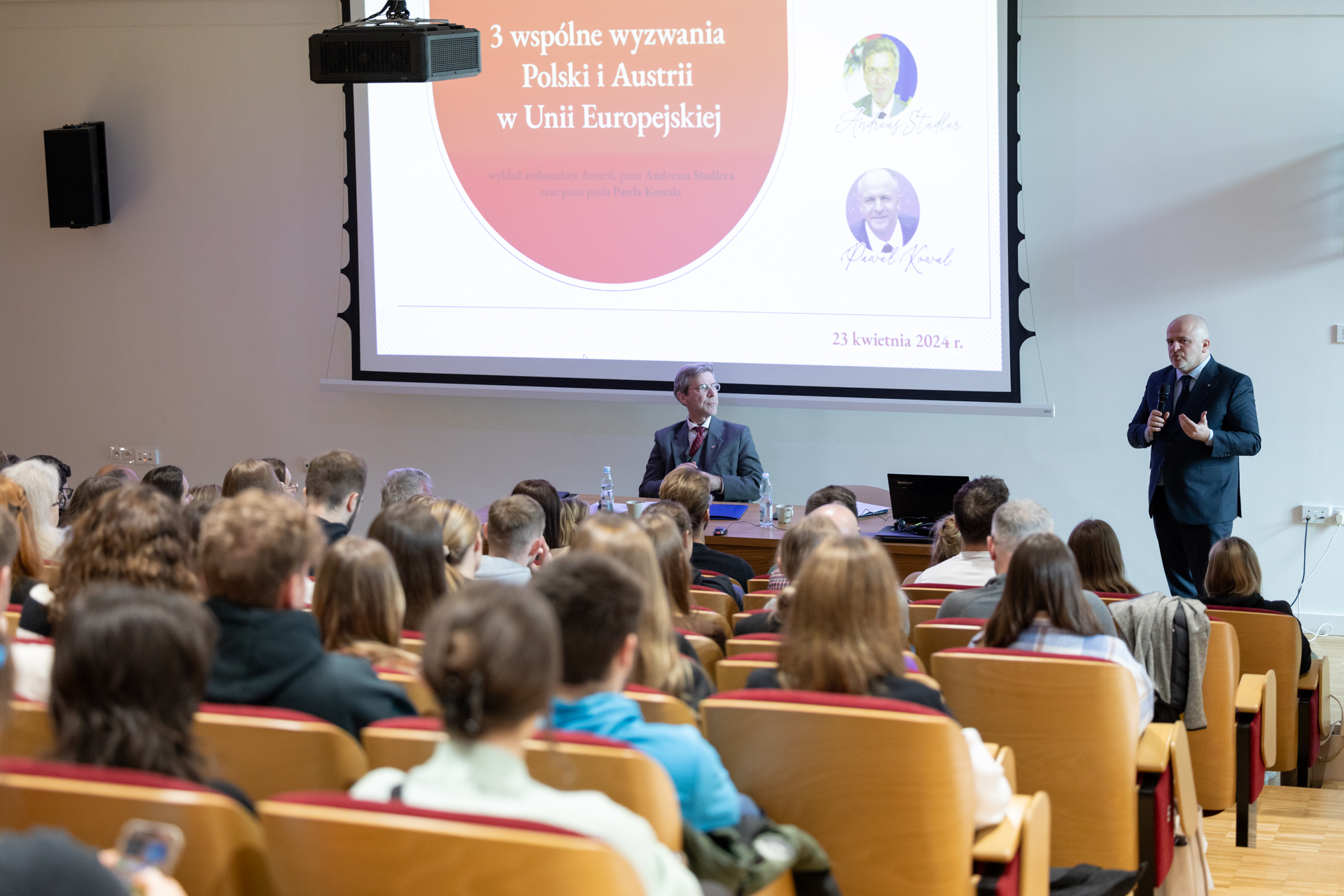 23 kwietnia br., w Uniwersytecie Rzeszowskim gościliśmy ambasadora Austrii pana Adreasa Stadlera oraz pana posła prof. Pawła Kowala. Zaproszeni goście wygłosili wykład pt. 3 wspólne wyzwania Polski i Austrii w Unii Europejskiej.