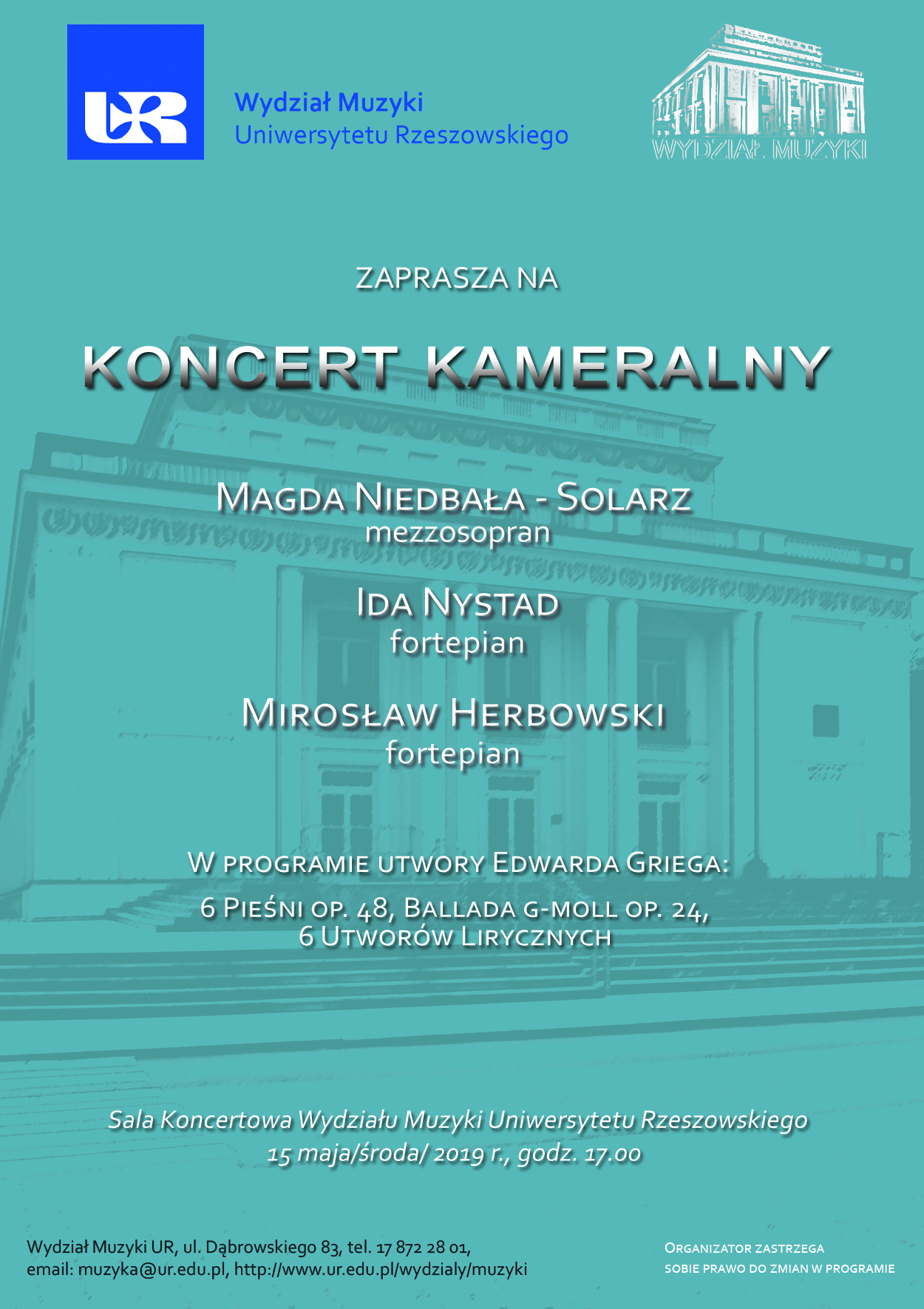 Wydział Muzyki UR zaprasza na koncert kameralny
