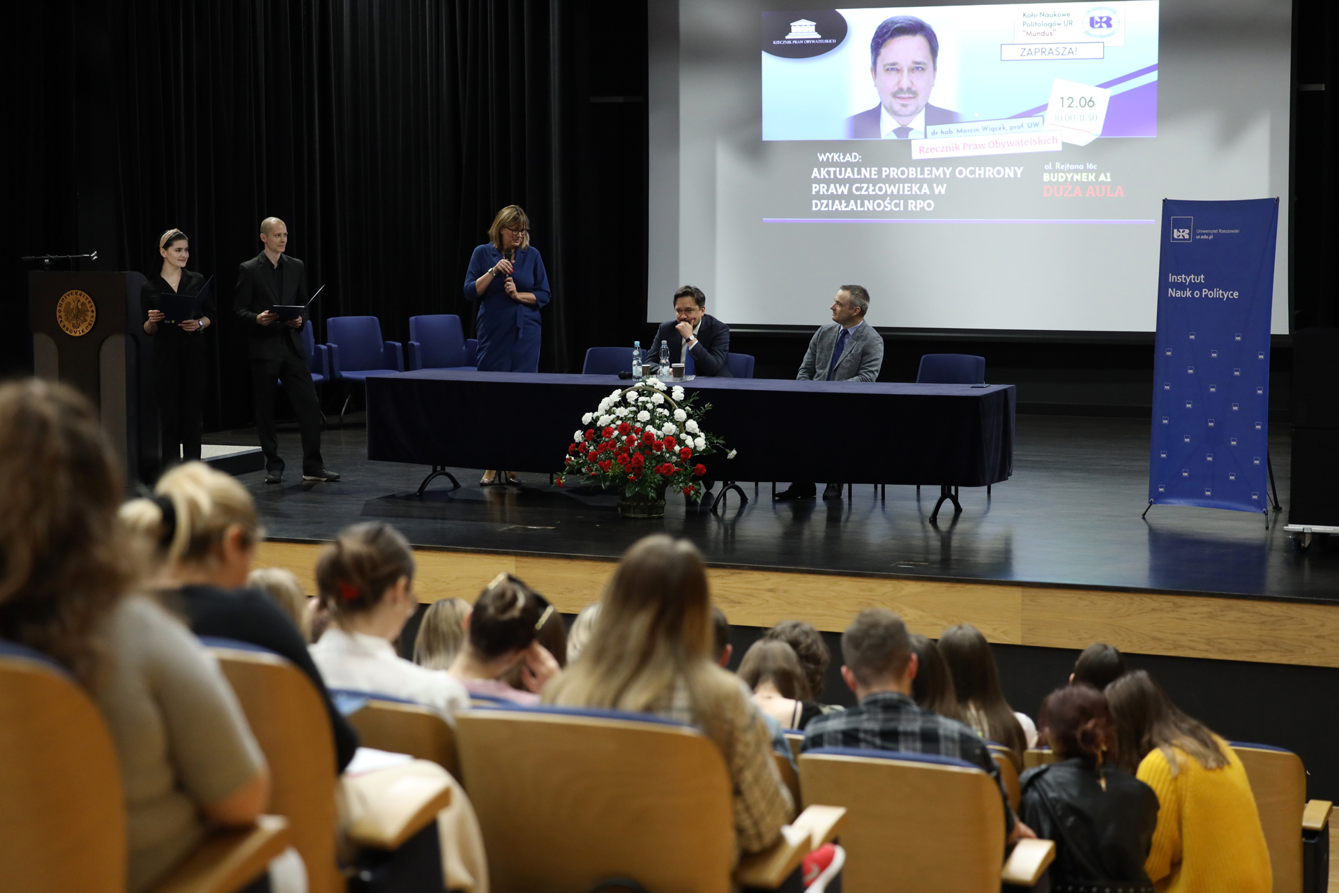 W dniu 12 czerwca 2023 r. z inicjatywy członków Koła Naukowego Politologów UR „Mundus” działającego w Instytucie Nauk o Polityce UR w Dużej Auli Uniwersytetu Rzeszowskiego, odbył się wykład dra hab. Marcina Wiącka, prof. UW - Rzecznika Praw Obywatelskich pt. „Aktualne problemy ochrony praw człowieka w działalności RPO”.