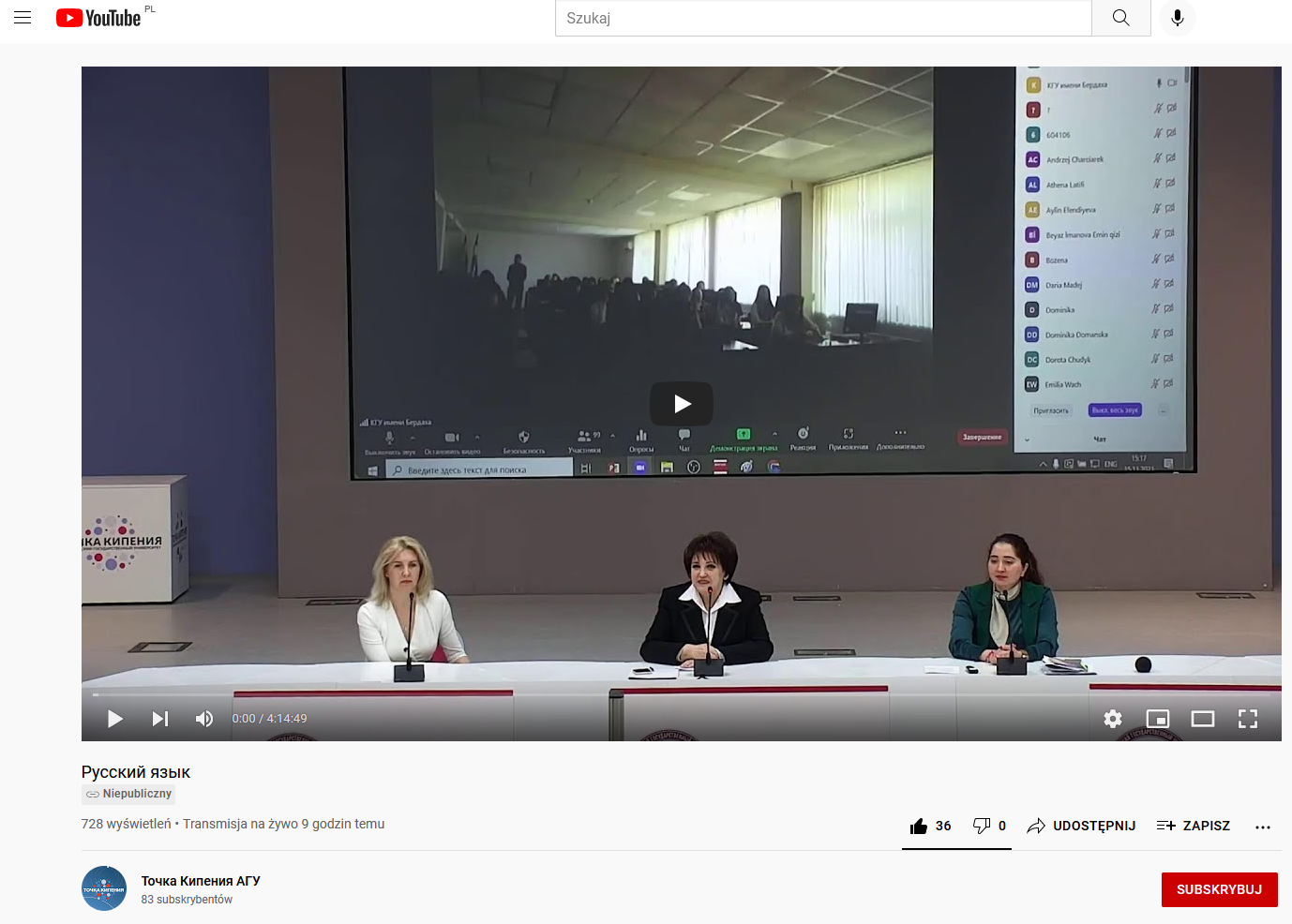 Słuchaczami wykładów w formie online byli zagraniczni studenci, uczniowie i nauczyciele z 14 krajów: Polski, Azerbejdżanu, Kazachstanu, Uzbekistanu, Iranu, Grecji, Egiptu, Wietnamu, Syrii, Maroka, Gwinei Bissau, Afganistanu, Kamerunu i Japonii.