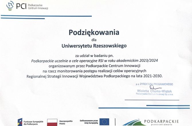 Podziękowania dla Uniwersytetu Rzeszowskiego