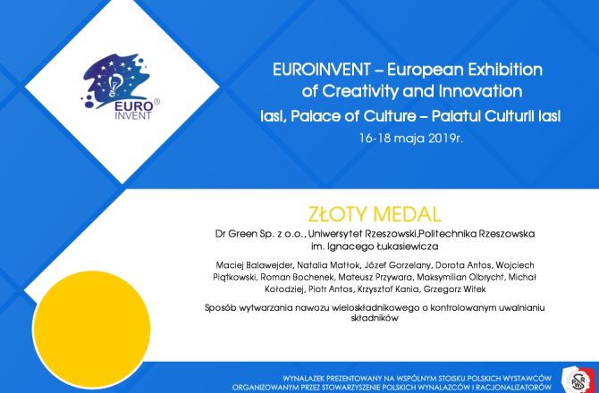 Złoty medal na międzynarodowej wystawie innowacji „EUROINVENT – European Exhibition of Creativity and Innovation”
