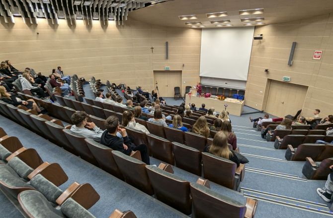 29 października 2024 r. w Dużej Auli Uniwersytetu Rzeszowskiego miało miejsce kolejne – już piąte – spotkanie z cyklu Wtorki z Panem Cogito, czyli warsztaty edukacyjne dla uczniów klas VIII szkół podstawowych i uczniów szkół średnich.