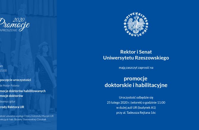 Rektor i Senat Uniwersytetu Rzeszowskiego zapraszają na promocje doktorskie i habilitacyjne 2020 - 25 lutego, godz. 11:00