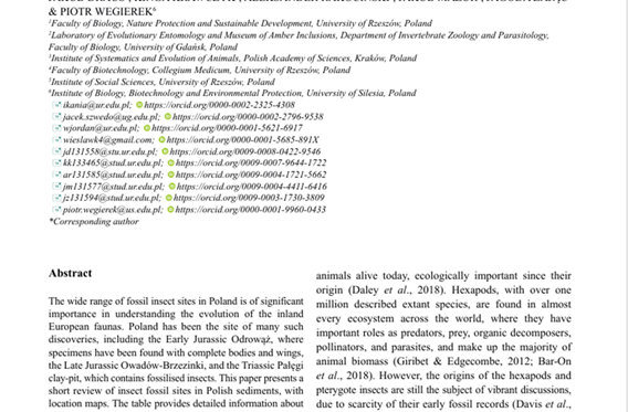 zobacz więcej Nowy artykuł o skamieniałościach owadów w osadach Polski