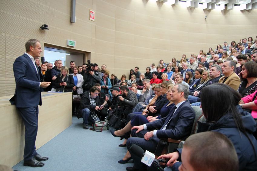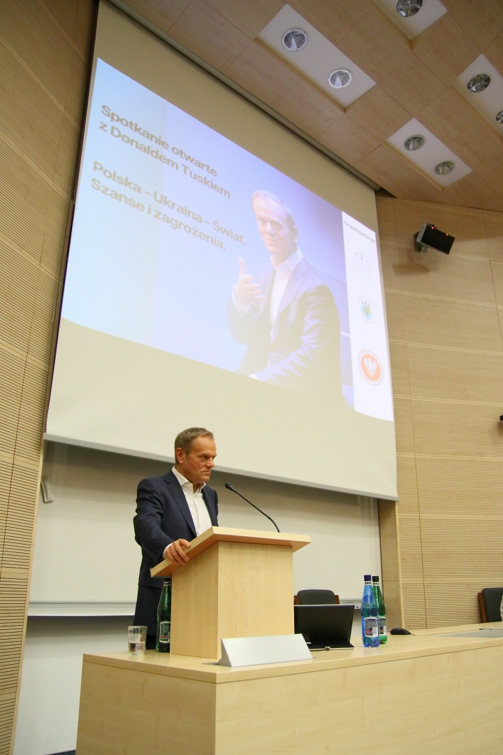 We wtorek, 26 kwietnia 2022 r. w auli budynku A-0 Uniwersytetu Rzeszowskiego, odbyło się spotkanie otwarte z Donaldem Tuskiem. Zorganizowały je studenckie koła naukowe związane z prawem konstytucyjnym i prawami człowieka działające w Instytucie Nauk Prawnych Uniwersytetu Rzeszowskiego. Wygłoszony przez lidera PO wykład został zatytułowany: „Polska – Ukraina – Świat. Szanse i zagrożenia”. Na spotkanie przyszło kilkaset osób, co widać na zdjęciach, wykonanych przez kol. Pawła Niemczaka, słuchacza UTW-UR.