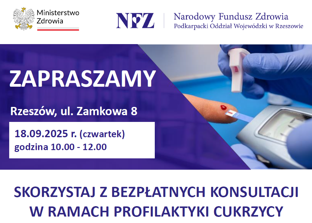 Zaproszenie na darmowe badania cukru z Podkarpackim NFZ