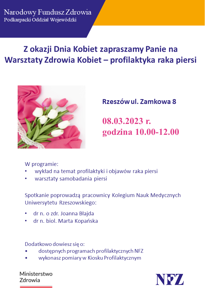 - 8 marca: Warsztaty zdrowia Kobiet - profilaktyka raka piersi