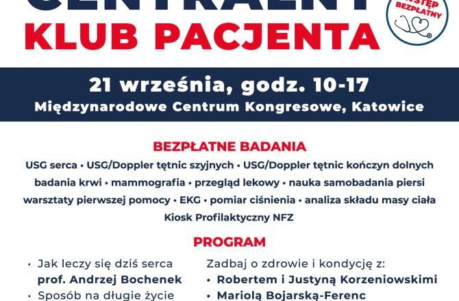 zobacz więcej Centralny Klub Pacjenta w Katowicach - zaprasza 21.09.2023 r.