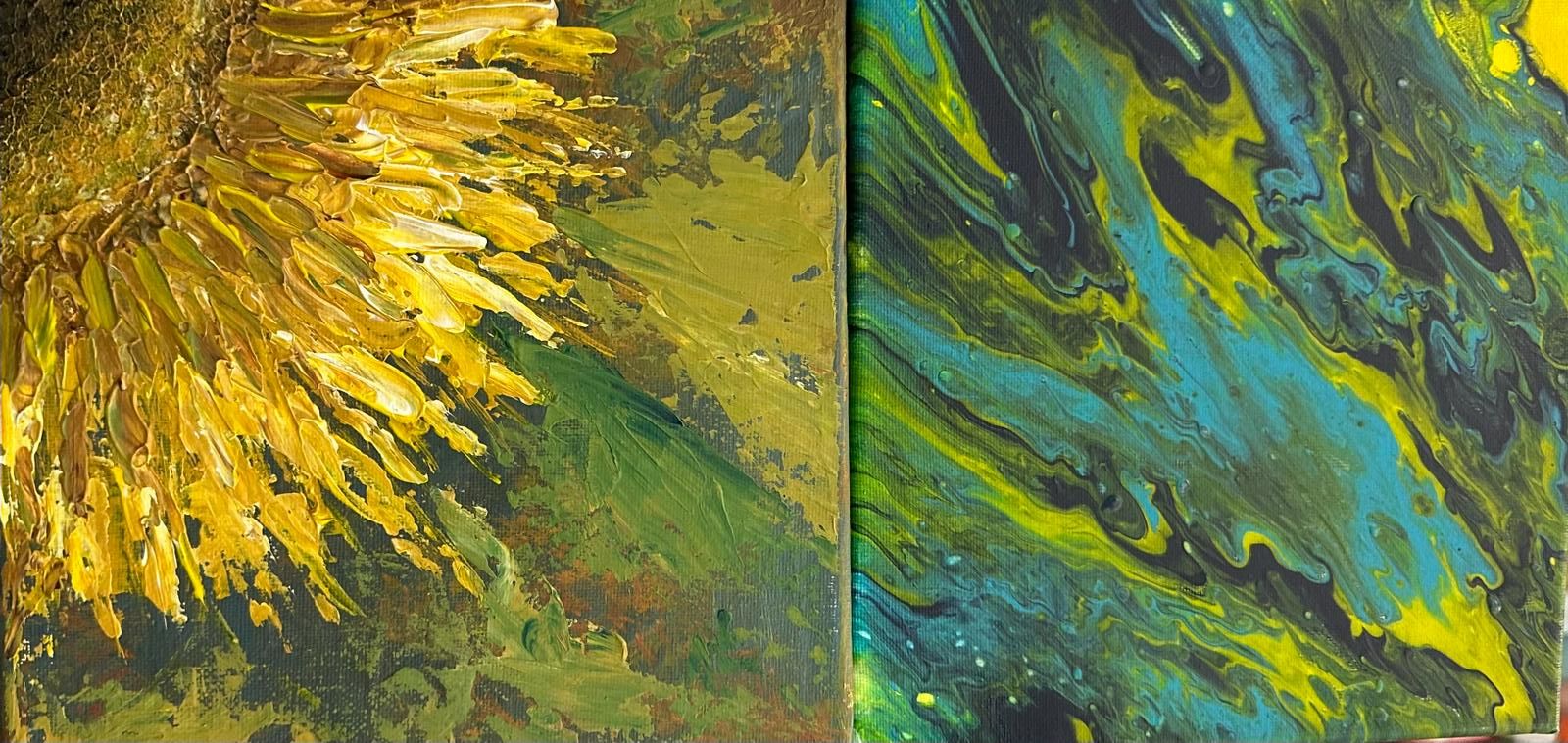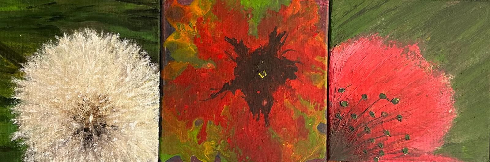 22.03.24. - rozdane zostały małe blejtramy 20x20 cm, na których malowano 2 tematy: