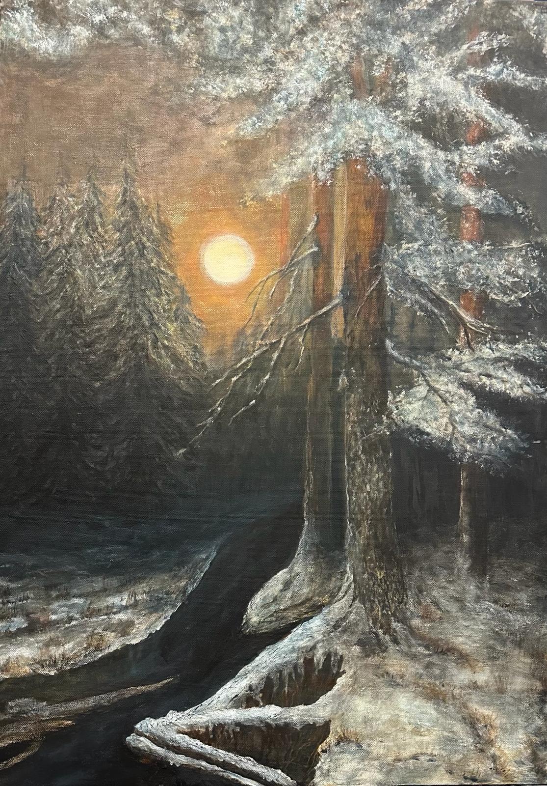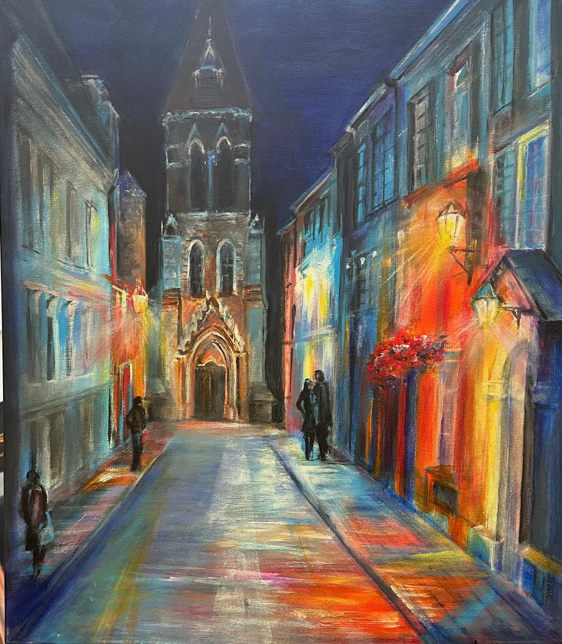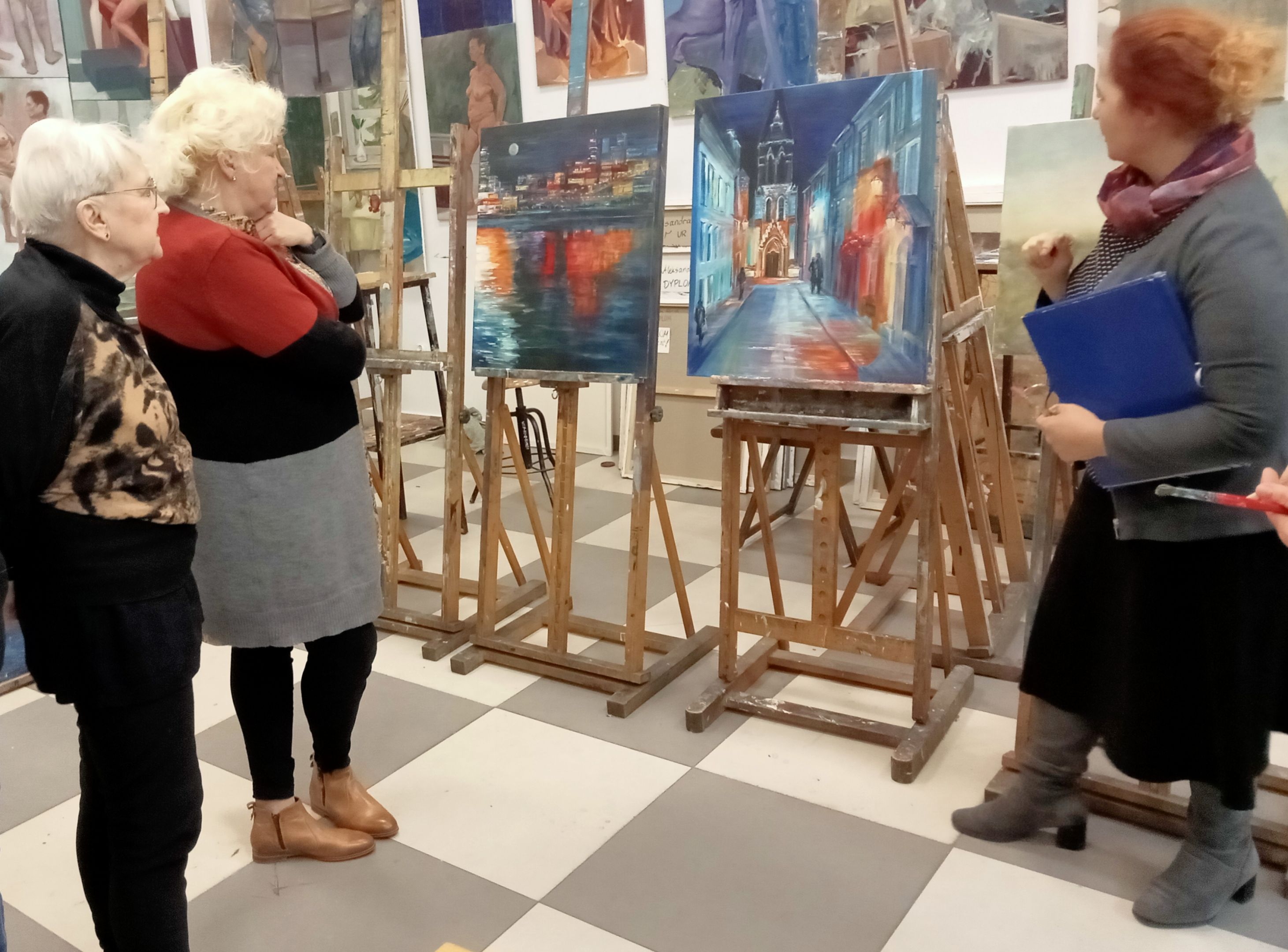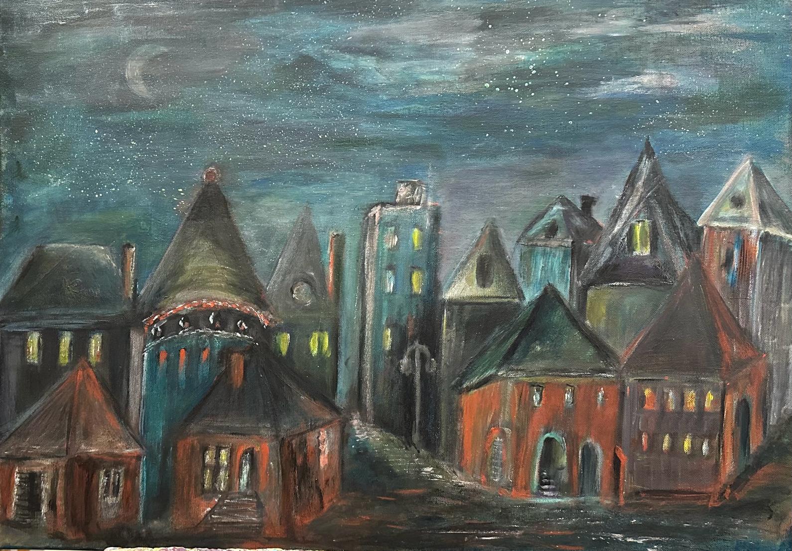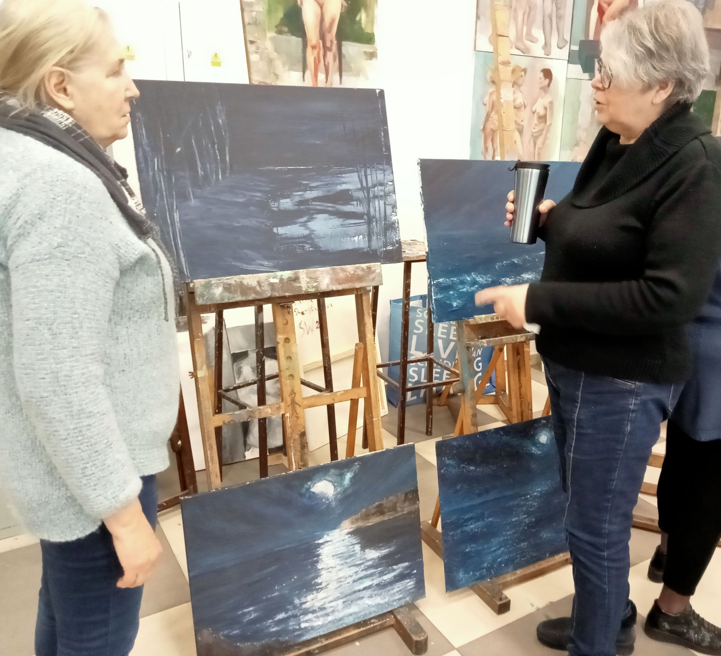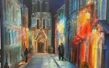 15.03.24. - tematem obrazów był NOKTURN - obrazy przedstawiały pejzaż nocny rozświetlony blaskiem księżyca lub latarni, jak również światła wielkich miast.