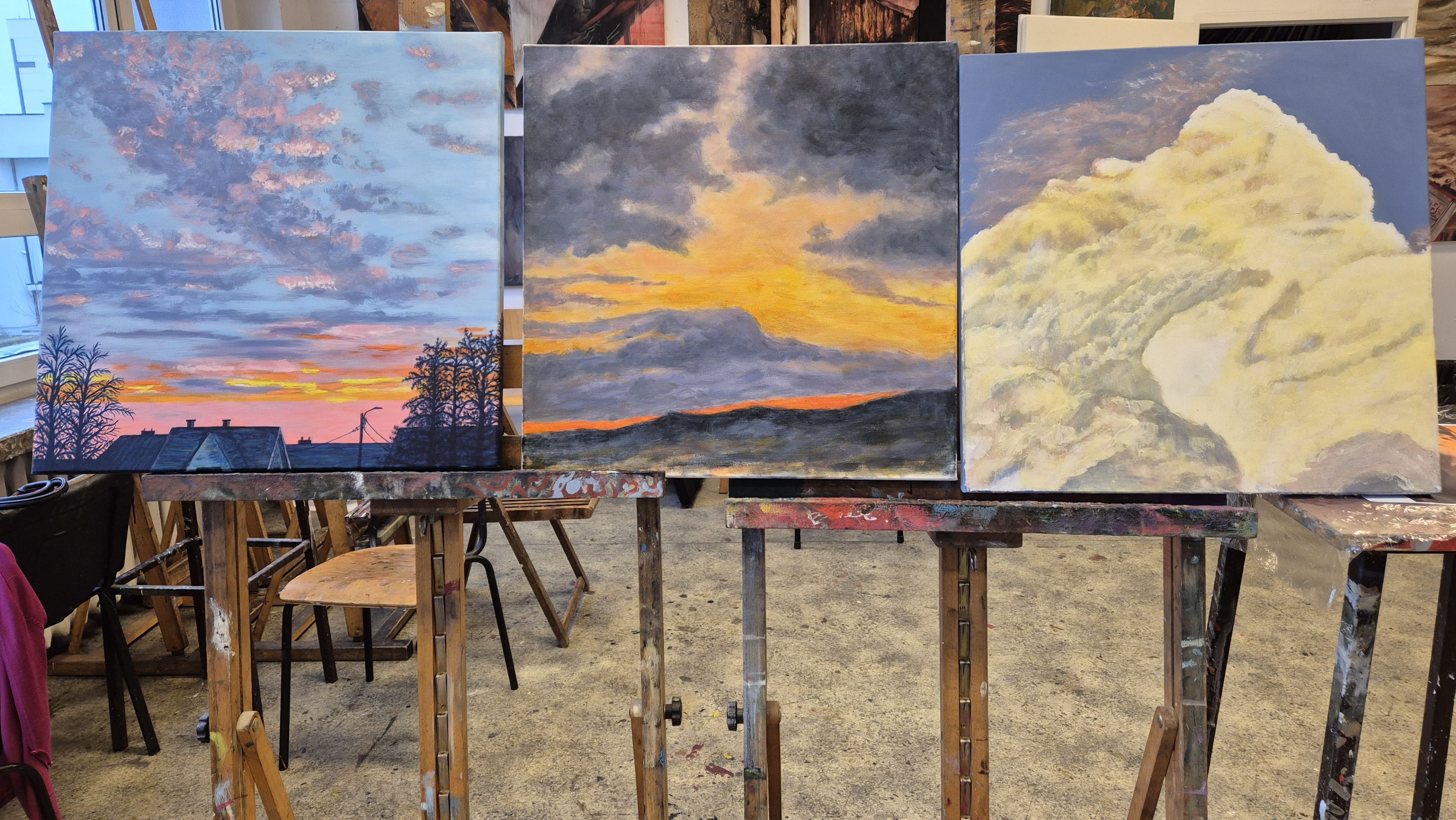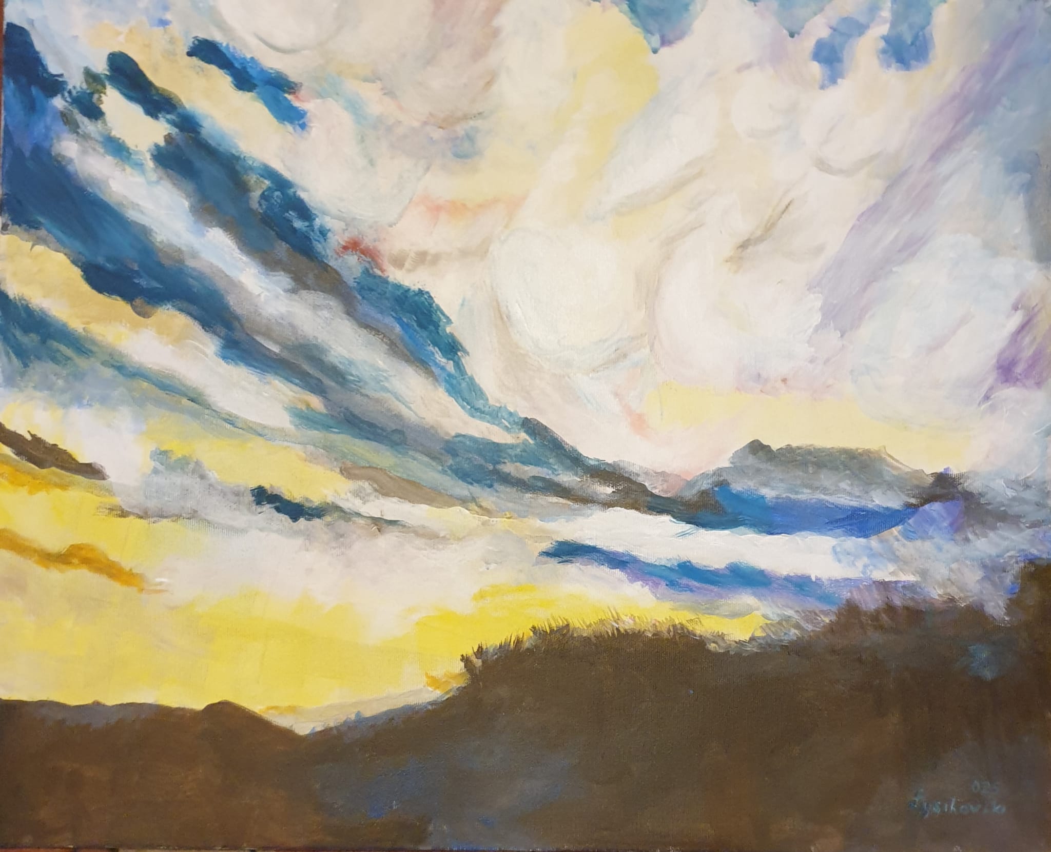 Podjęliśmy w tym semestrze dwa tematy prac malarskich: "Chmury" i "Poetyka maszyn - mechanizmy". Tematy zdecydowanie różne, wymagające innego podejścia i innego stopnia precyzji w przedstawieniu wybranego motywu.