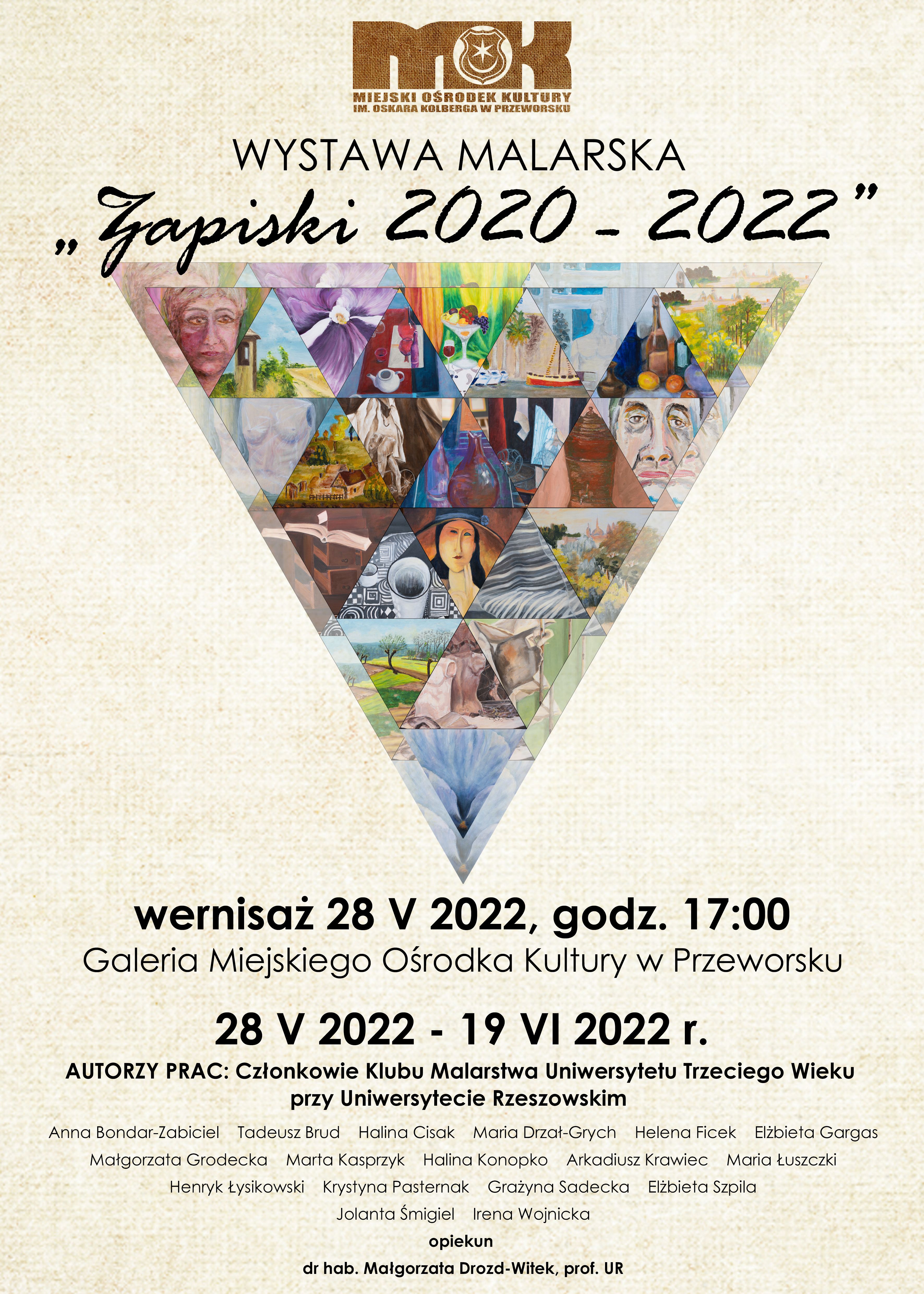 Zapraszamy do obejrzenia wystawy malarskiej "Zapiski 2020-2022" członków Klubu malarstwa UTW-UR w Miejskim Ośrodku Kultury w Przeworsku, w dniach 28.05 - 19.06.2022 r.
