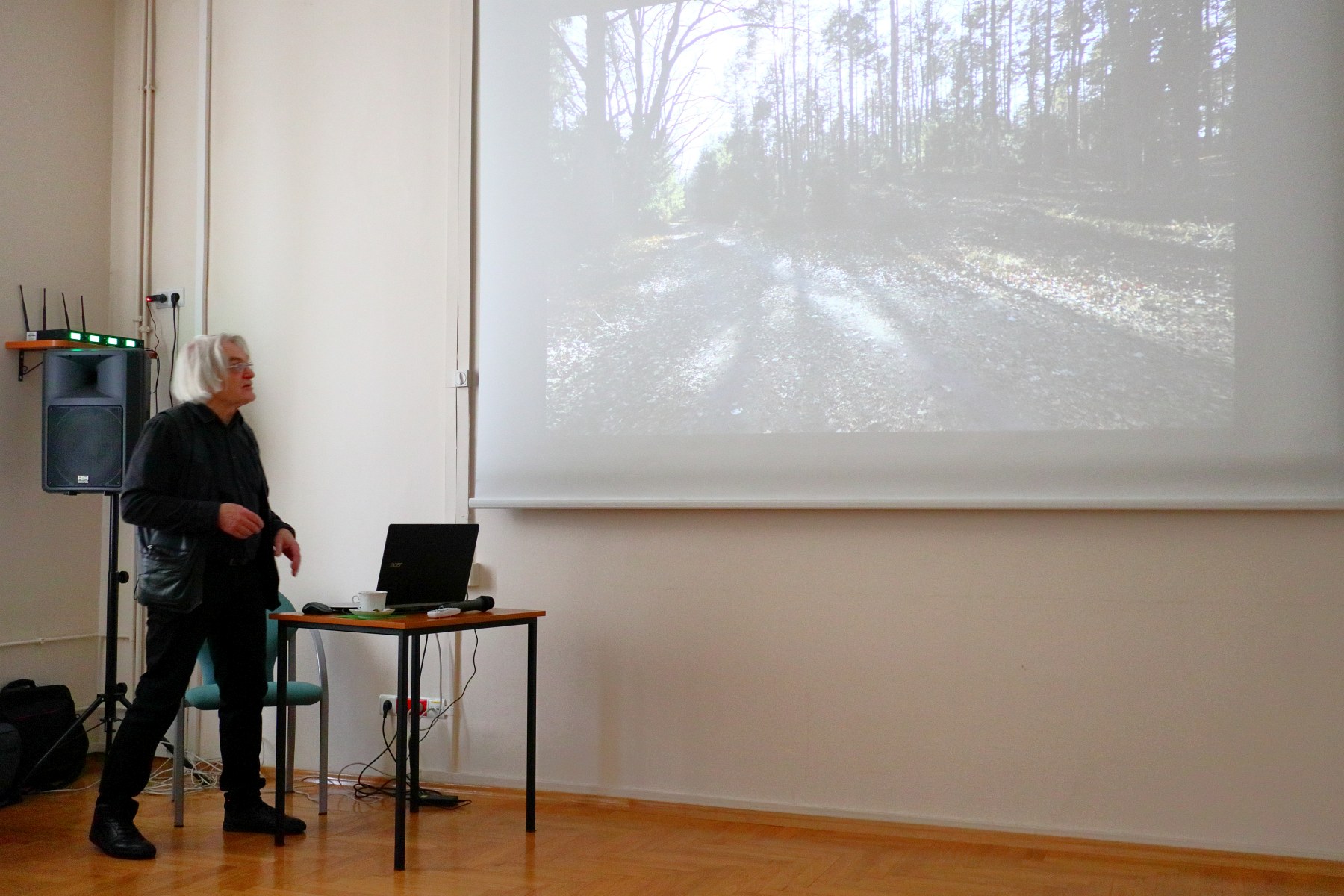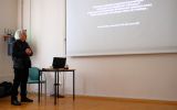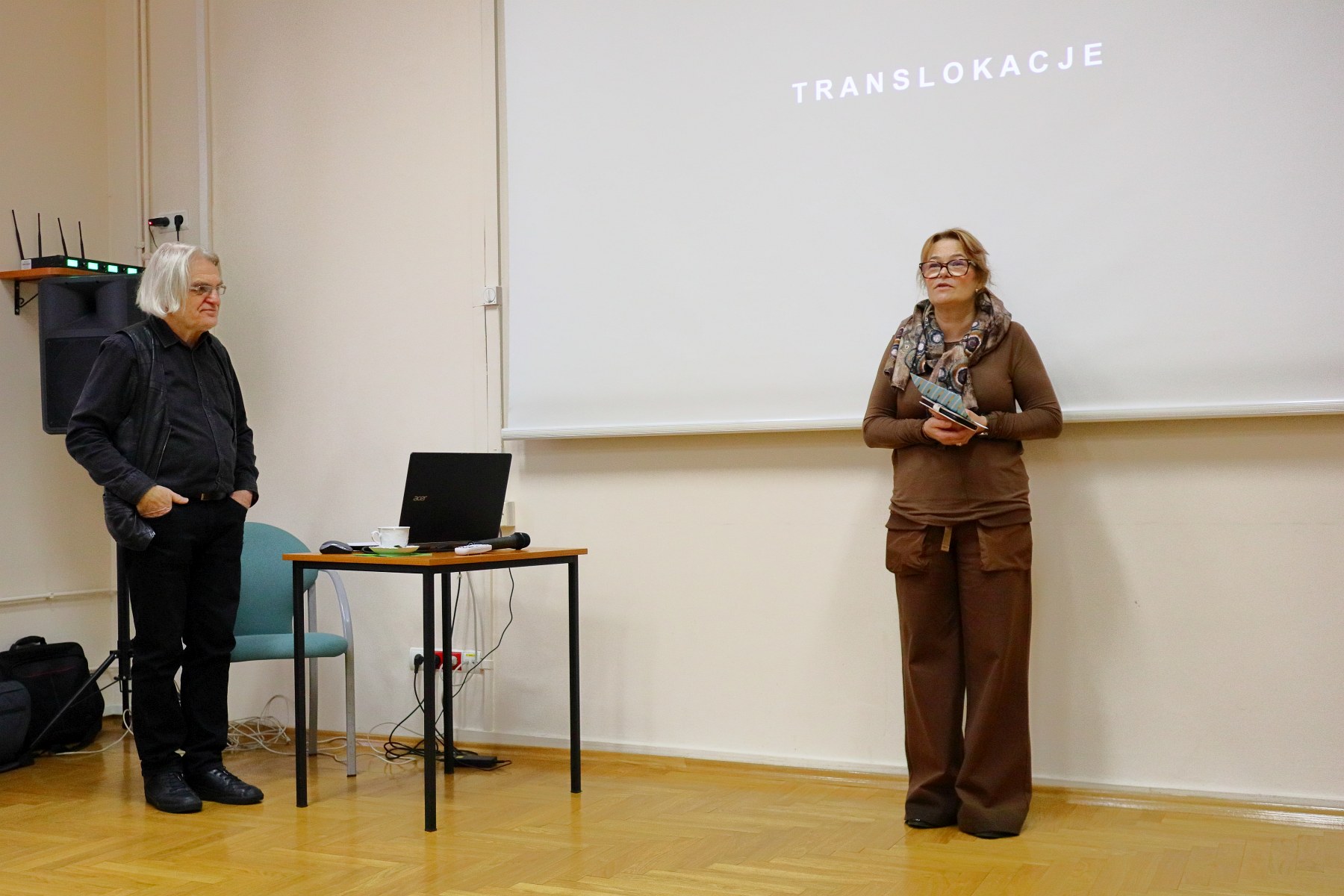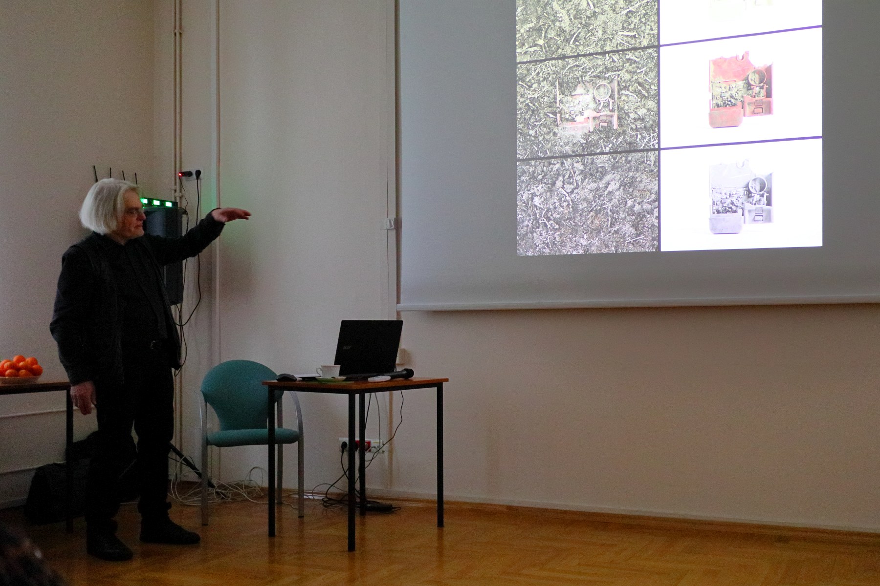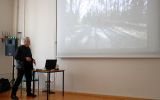 Spotkanie otworzyła pani Maria Jamróg, kierowniczka Filii Nr 10 WiMBP w Rzeszowie, w serdecznych słowach witając zebranych. Następnie głos zabrała kol. Anna Habrat, która w krótkich słowach przybliżyła sylwetkę prelegenta. Dr K.Pisarek swoje wystąpienie rozpoczął od wyjaśnienia tytułu prezentacji. Szczególną uwagę skupił na podaniu definicji terminu "translokacja". Krótko mówiąc oznacza on przeniesienie na inne miejsce. Istotnym elementem w powstawaniu prezentowanego cyklu było niespieszne wędrowanie, w trakcie którego autor odnajdywał i fotografował obce elementy w leśnym środowisku. Była to np. rękawiczka, kawałek plastiku lub inne przedmioty przyniesione przez kogoś do lasu. Rzeczy te stały się zbędne i zostały porzucone w obcym dla nich środowisku, zaś z czasem zostały wchłonięte przez przyrodę. Kolejnym etapem powstawania cyklu fotografii było już nie tylko utrwalanie na kliszy fotograficznej ale ich wydobywanie, przenoszenie do pracowni, a tam fotografowanie w różnych ujęciach. W ten sposób następowała kolejna "translokacja". W ten sposób dr K. Pisarek stworzył cykl, w którym zostały zestawione ze sobą fotografie przedmiotów wchłoniętych przez obce dla nich środowisko, fotografii samych przedmiotów zaprezentowanych w różnych ujęciach oraz samych przedmiotów, stanowiących eksponaty wystawy. Wystawa TRANSLOKACJE była prezentowana publiczności kilka razy. Ciekawostką jest fakt, że nigdy nie była ona pokazywana w tej samej wersji. Za każdym razem układ fotografii i eksponatów był inny.