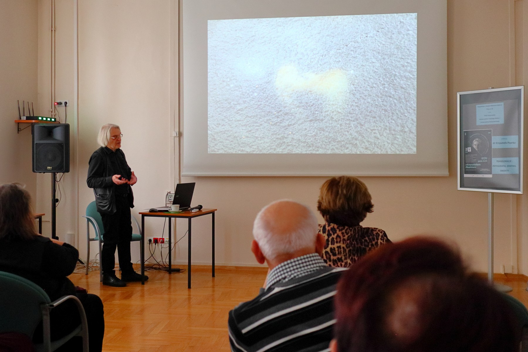 Dnia 7 grudnia 2023 roku, w budynku WiMBP w Rzeszowie przy ul. Sokoła 13, odbywało się kolejne spotkanie członków Klubu Pasjonatów UTW-UR. Na spotkaniu, mimo bardzo niesprzyjających warunków atmosferycznych, zjawiło się 15 osób. Tym razem gościem Klubu Pasjonatów był dr Krzysztof Pisarek, prowadzący zajęcia z fotografii w Instytucie Sztuk Pięknych Uniwersytetu Rzeszowskiego.