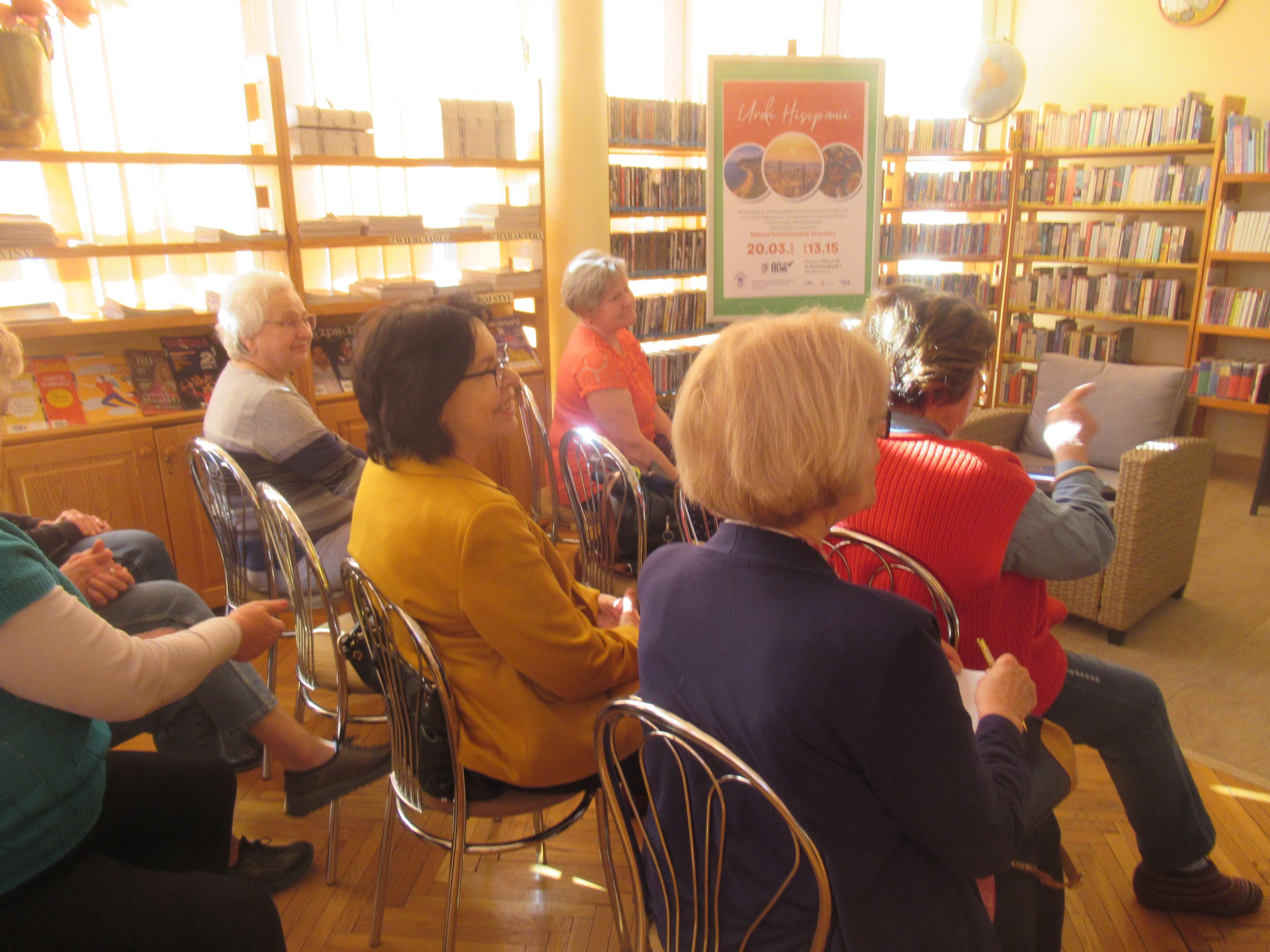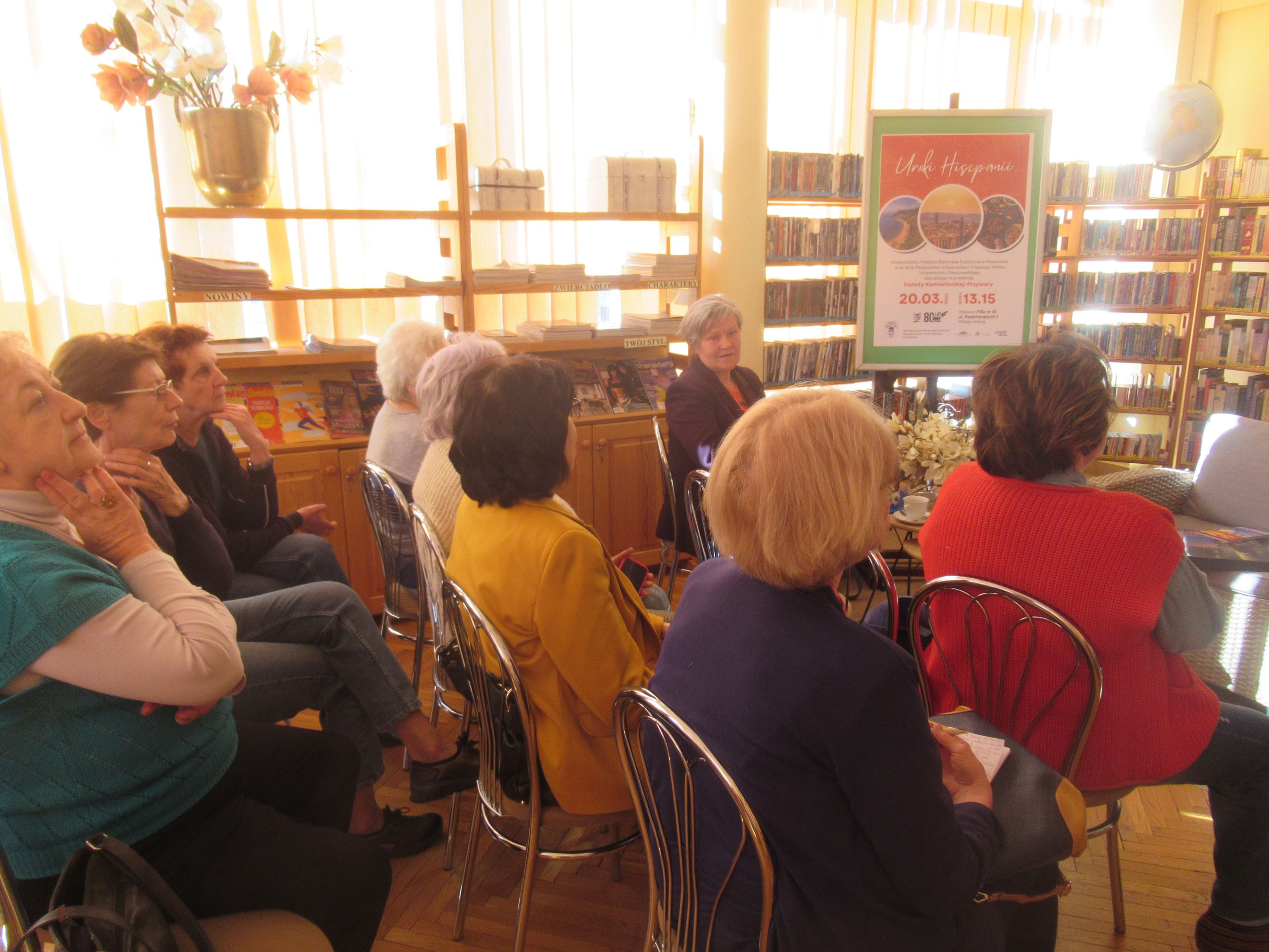 Tradycyjnie już w czwartek, 20 marca 2025 r. w Filii Nr 10 WiMBP w Rzeszowie przy ul. Podchorążych 1, odbyło się spotkanie Klubu Pasjonatów. W spotkaniu „Uroki Hiszpanii. - Aktywny senior w hybrydowym środowisku - Erasmus +” uczestniczyło około 15 osób. Byli to członkowie Klubu Pasjonatów, członkowie DKK-UTW, zaprzyjaźnione osoby spoza UTW, redaktor PR Rzeszów pani Anna Leśniewska. Zebranych powitała kierowniczka Filii Nr 10 WiMBP przy ul. Podchorążych 1, pani Maria Jamróg, która poprosiła o przybliżenie sylwetki prelegentki. Głos zabrała kol. Małgorzata Chlebowska, wieloletnia współpracowniczka, była wiceprezes i członek Zarządu UTW-UR, moderatorka DKK-UTW, podkreśliła, że udział w projekcie Erasmus + był dla wyróżniających się aktywnością członków zarządu, a szczególnie na to zasługiwała Prezes UTW-UR Danuta Kamieniecka-Przywara, która od 2009 r. społecznie pracuje w zarządzie, pełniąc przez 3 kadencję funkcję prezes, a także będąc wiceprezes i koordynatorką sekcji artystyczno-kulturalnej, przyczyniając się w dużej mierze do rozwoju i prestiżu UTW-UR w środowisku seniorów, w Uniwersytecie Rzeszowskim i mieście Rzeszowie.