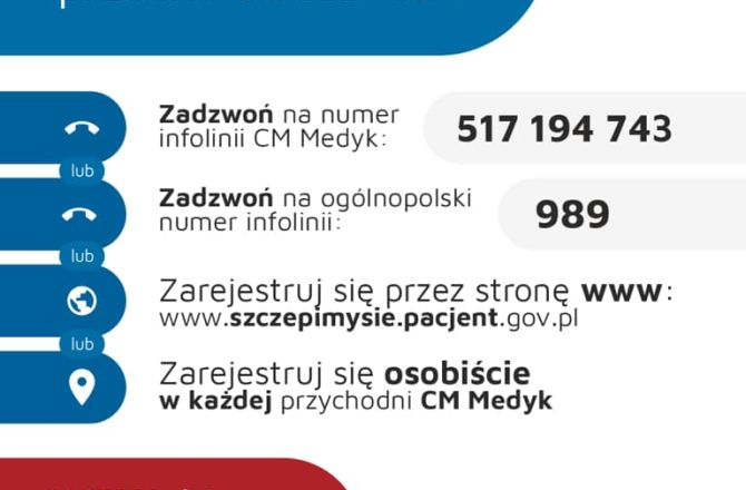 W załączeniu grafika z informacją, w jaki sposób można się zarejestrować na szczepienie.