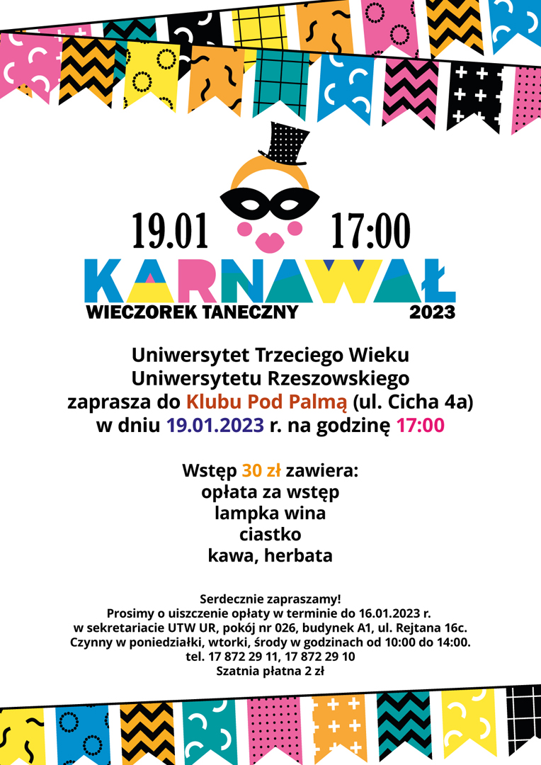 Zapraszamy na Karnawałowy wieczorek taneczny UTW-UR