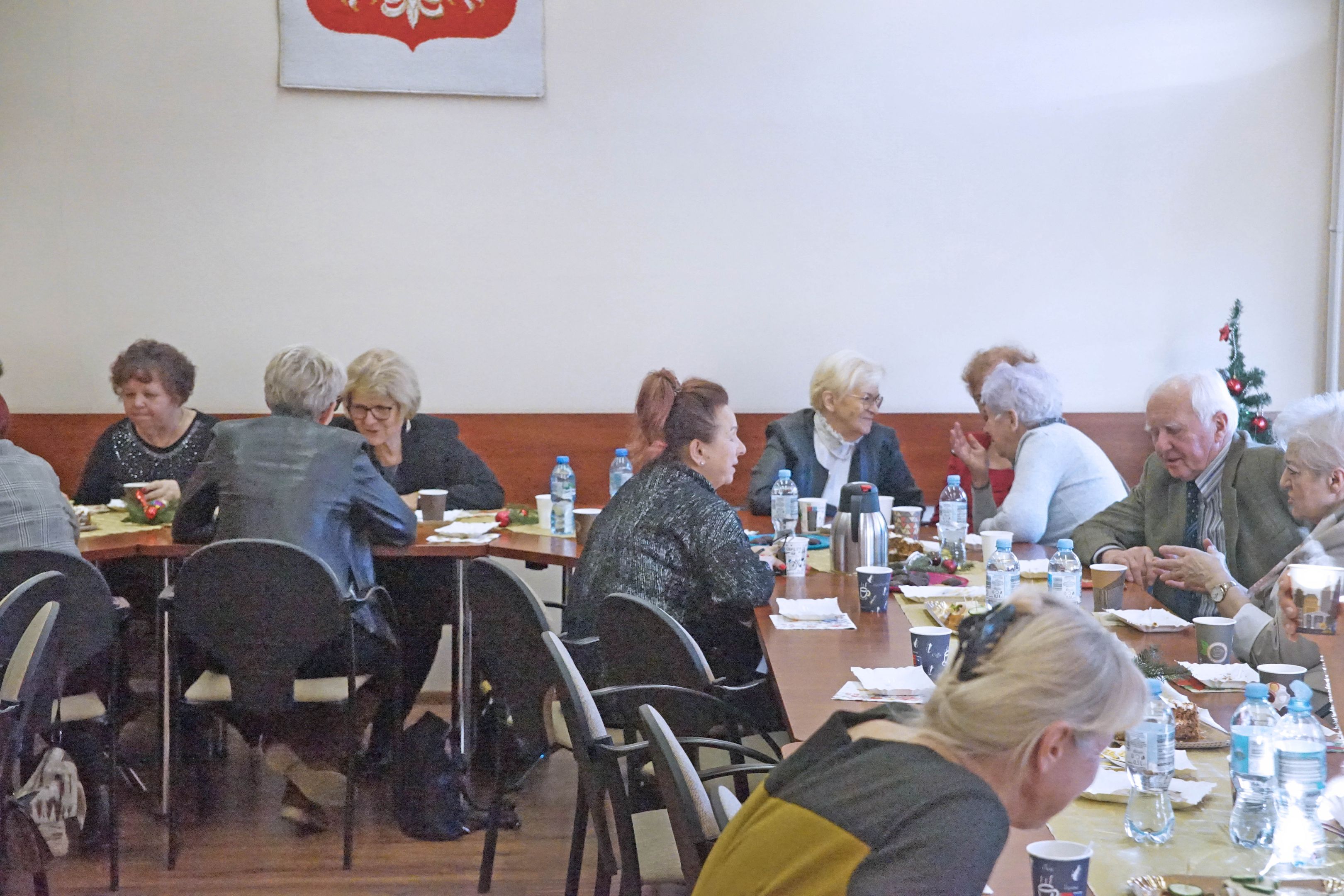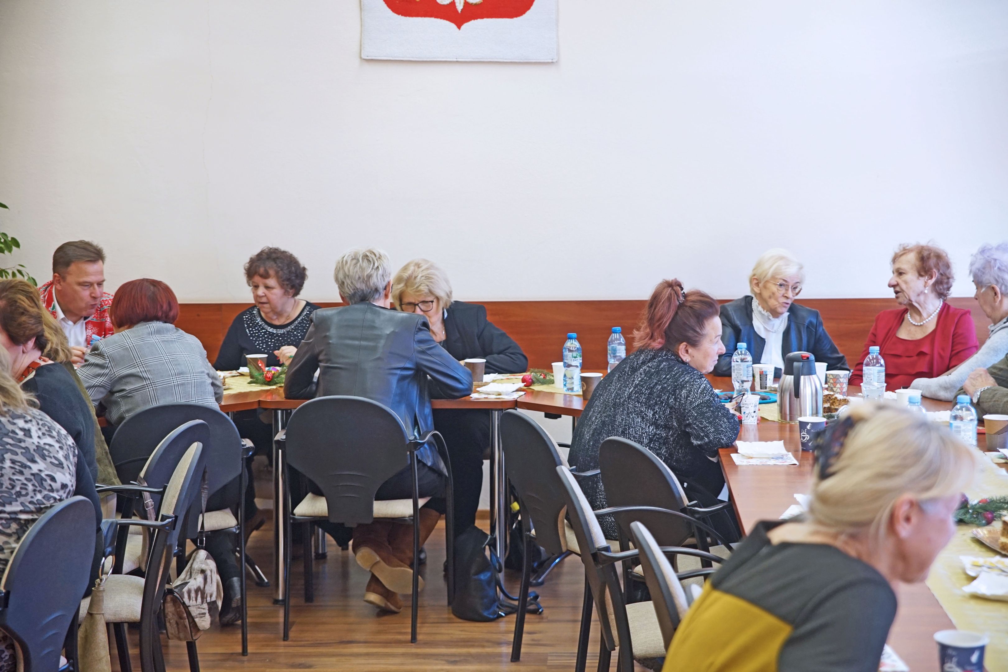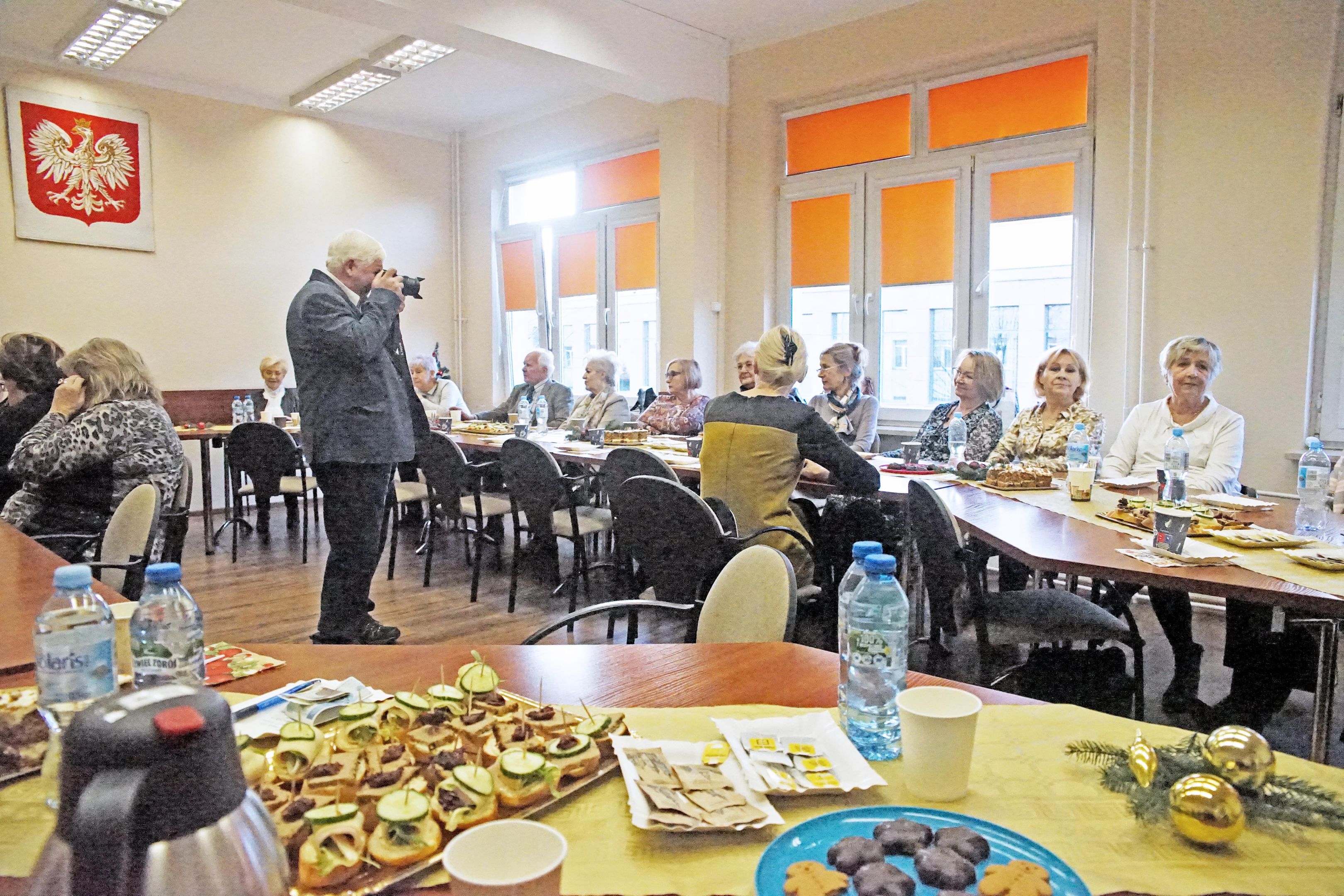 W ogóle wszyscy uczestnicy podkreślili świąteczny charakter spotkania eleganckim ubiorem. Uroczysty nastrój dopełniały pięknie nakryte stoły, a na nich ciasto i przekąski, o które zadbała wiceprezes kol. Irena Fabiańska. I w tym aspekcie efekt organizacyjny był wynikiem zgodnej współpracy grupy koleżanek.