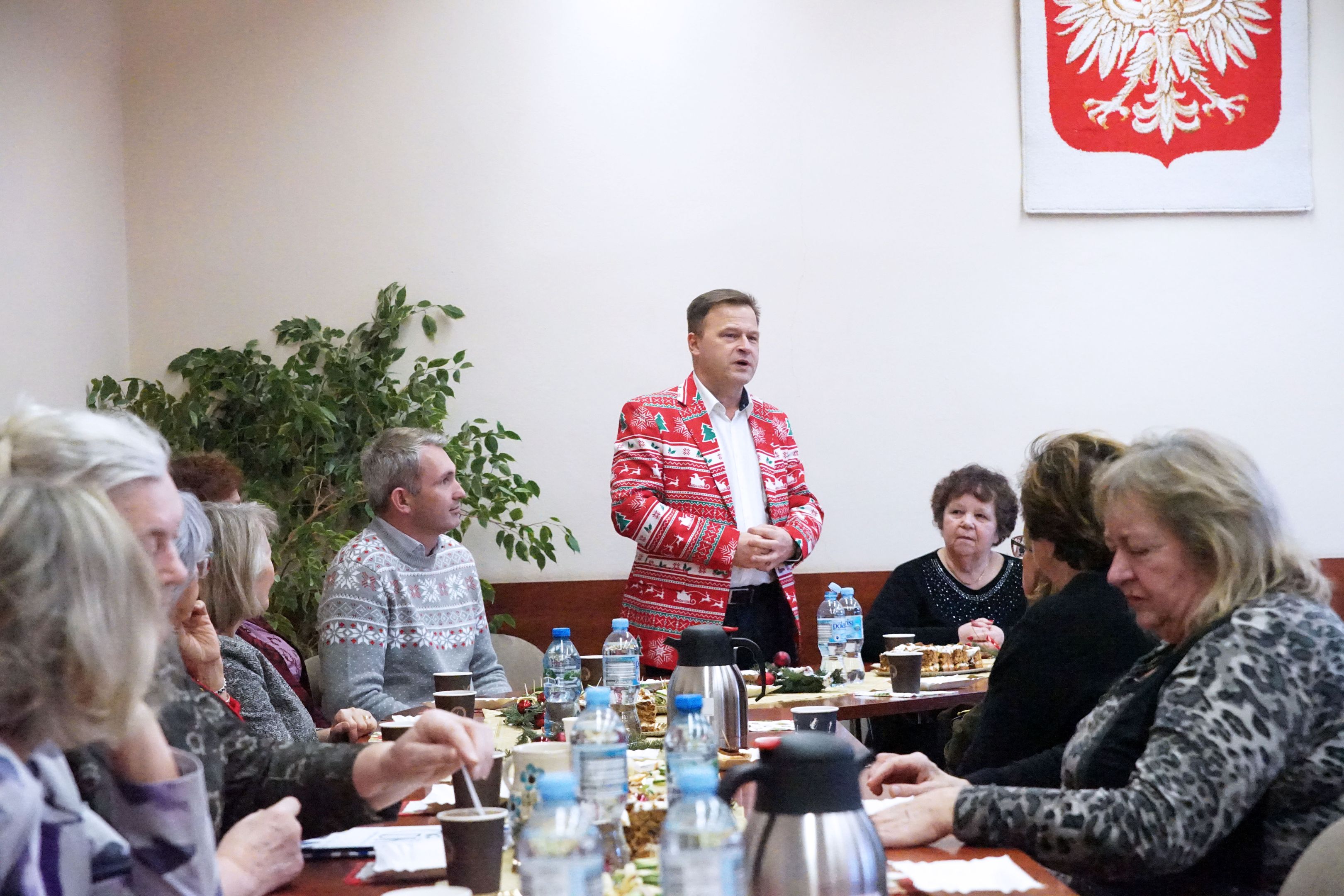 W dowcipnej formie życzenia zebranym złożył dr Waldemar Lib, życząc zdrowia i pieniędzy w różnych konfiguracjach! Sam również pięknie się prezentował w świątecznej marynarce w okolicznościowe wzorki.