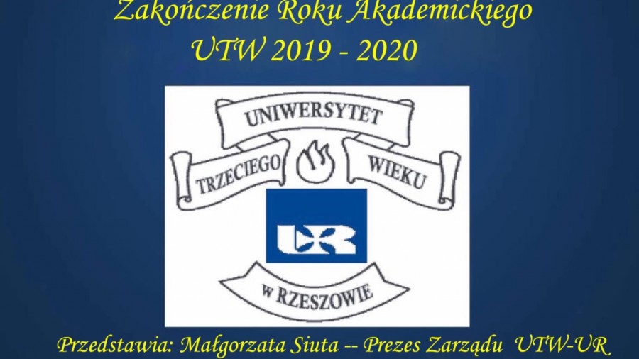 Zakończenie roku akad.2019/2020 w Uniwersytecie Trzeciego Wieku Uniwersytetu Rzeszowskiego - w załączeniu linki do wystąpień Prezes Małgorzaty Siuty i Wiceprezes Danuty Kamienieckiej-Przywara.