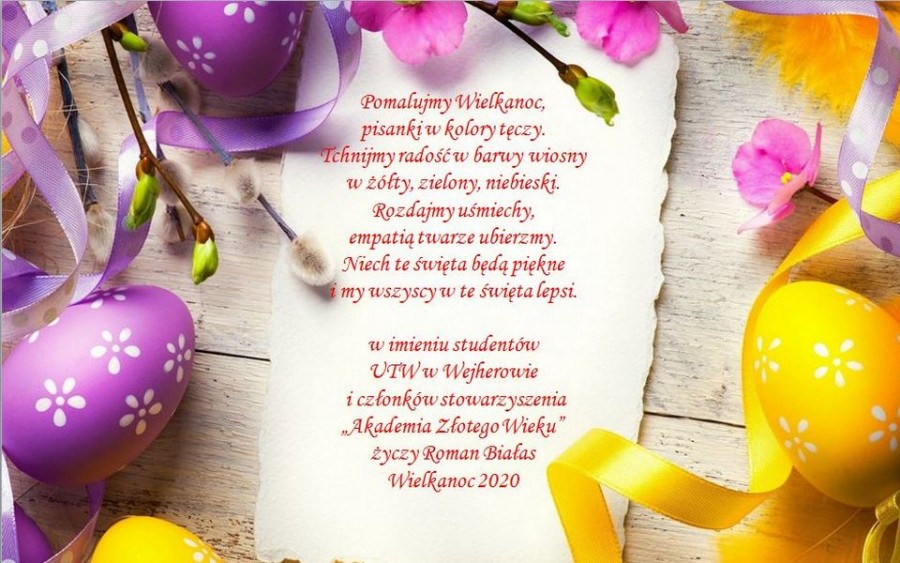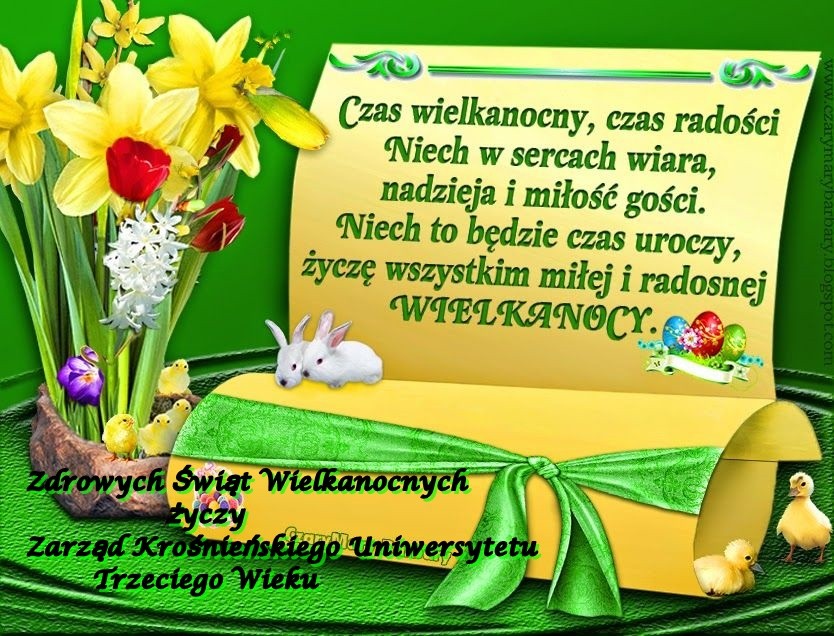 ŻYCZENIA NA WIELKANOC OD PREZES UTW-UR MAŁGORZATY SIUTY.