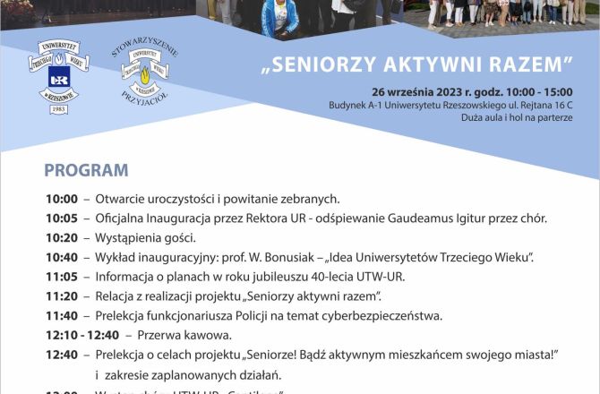 Zapraszamy 26 września 2023 - w Roku 40-lecia UTW-UR!