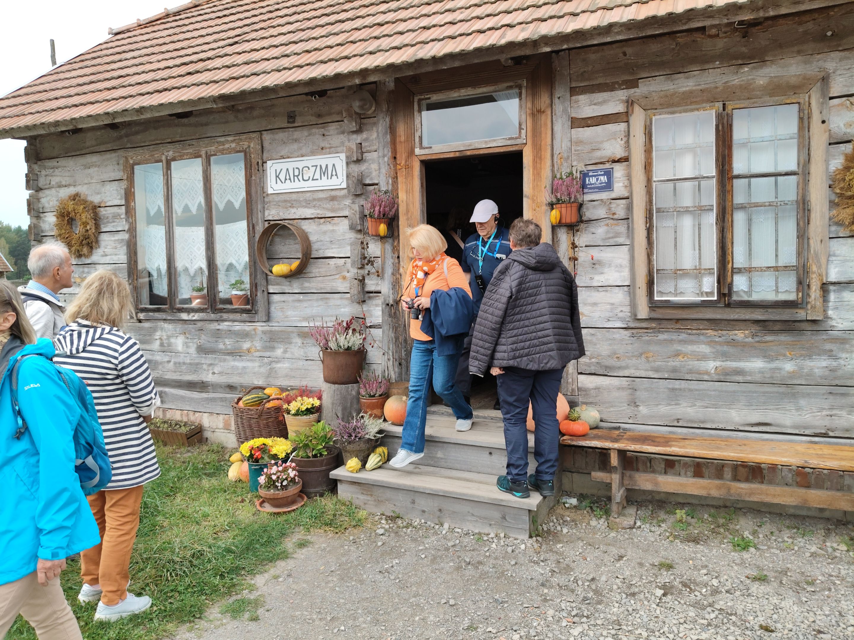 Następnie udaliśmy się do Baszni Dolnej zwiedzać Kresową Osadę. Kresowa Osada w Baszni Dolnej to wioska tematyczna, która przenosi zwiedzających w przeszłość. Odwołuje się do wielokulturowości dawnych Kresów Rzeczypospolitej, oferując możliwość ciekawego spędzenia wolnego czasu. To idealne miejsce dla miłośników historii, tradycyjnego jadła i aktywnej turystyki w otoczeniu naturalnej przyrody. Budowę Kresowej Osady zakończono w 2013 roku, a kilka miesięcy później, dzięki głosom wielu internautów, obiekt wybrano „Unijną Perłą Podkarpacia”. To zasługa doskonałego przedstawienia pamięci o dziedzictwie kulturowym Ziemi Lubaczowskiej – Kresowej Krainy. Od tamtej pory Kresowa Osada zdobyła kilka innych nagród i certyfikatów, m.in. Produkt Turystyczny Podkarpacia roku 2015 – II miejsce, Certyfikat – Szlak Podkarpackie Smaki, Certyfikat Miejsca Przyjaznego Rowerzystom Wschodniego Szlaku Rowerowego Green Velo. W Galerii Lokalnej Historii czekają: wirtualna przebieralnia w stroje z epoki hetmana Sobieskiego oraz eksponaty z czasów nieistniejącej już huty szkła kryształowego. W Kresowej Osadzie szczególne miejsce zajmuje dawna zagroda włościańska z oryginalnym wyposażeniem. Stojąca obok stuletnia stodoła nazwana „Wesołą stodołą” zaadaptowana jest na potrzeby organizacji wernisaży, wystaw, kameralnych koncertów, a także biesiad i imprez integracyjnych, które cieszą się coraz większą popularnością. Na gości, zainteresowanych rzemiosłem i rękodziełem, czekają warsztaty rzemieślnicze: kowalski, garncarski, stolarski i manufaktura szkła.
