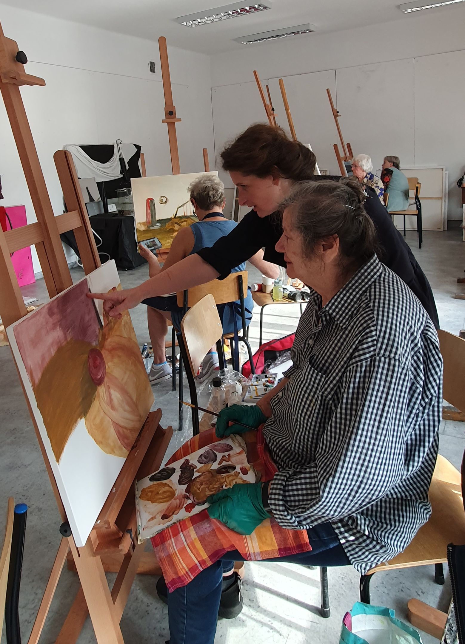 W ramach projektu "Aktywny senior to zdrowszy senior" dofinansowanego z budżetu Województwa Podkarpackiego - Regionalnego Ośrodka Polityki Społecznej w Rzeszowie, na podstawie umowy nr. 9/2023/PS, odbyły się warsztaty doskonalące techniki malarskie Grupy I Klubu Malarstwa UTW-UR. Osobą prowadzącą była dr hab. prof.UR Małgorzata Drozd-Witek, a spotkania miały miejsce w Instytucie Sztuk Pięknych UR, w dniach: 8 i 29 września oraz 13 i 27 października 2023.