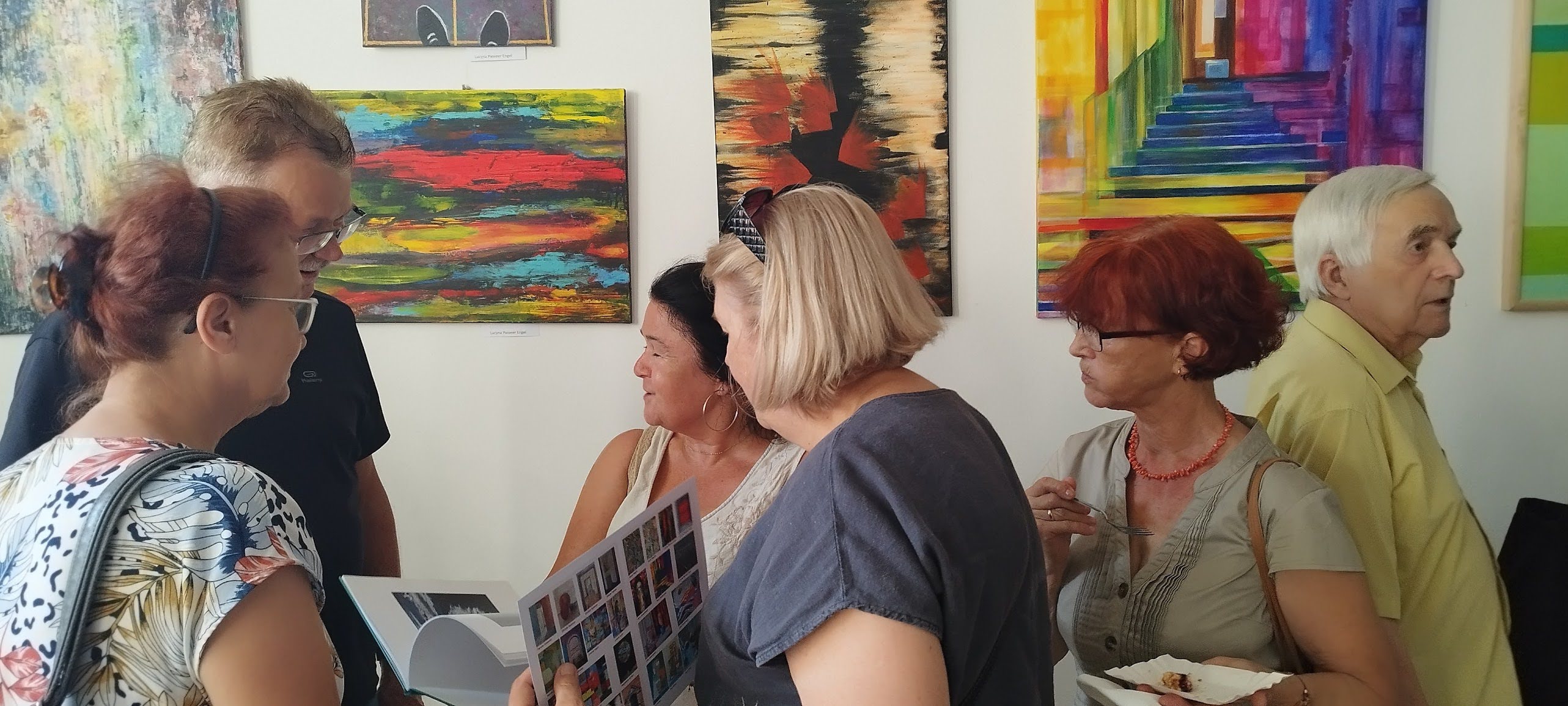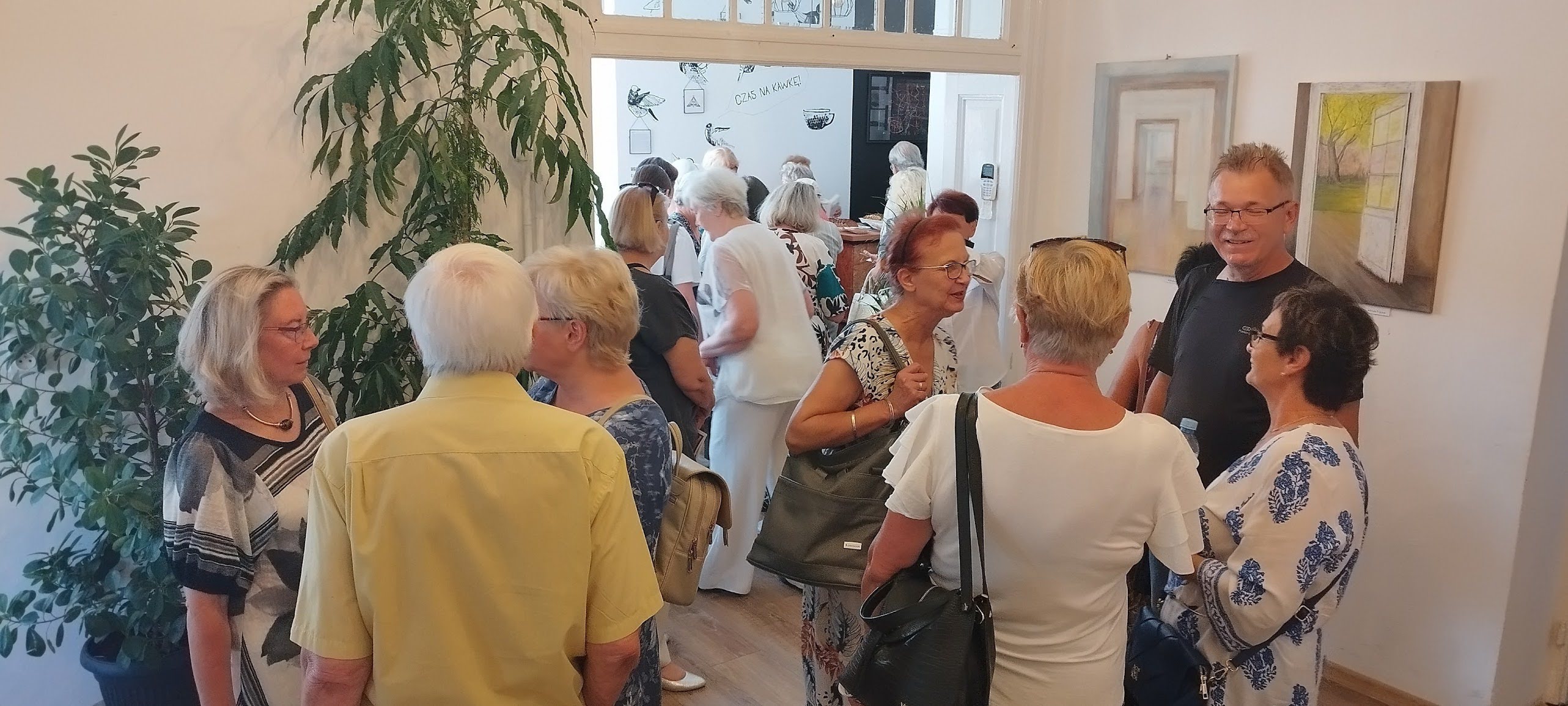 W ramach realizacji projektu „Aktywny senior to zdrowszy senior”, dofinansowanego z budżetu Województwa Podkarpackiego - Regionalnego Ośrodka Polityki Społecznej w Rzeszowie na podstawie umowy nr 9/2023/PS z dnia 27 czerwca 2023, Grupa II Klubu Malarstwa Uniwersytetu Trzeciego Wieku UR zorganizowała wystawę przeglądową swoich prac w salach wystawowych Rzeszowskiego Inkubatora Kultury, przy Rzeszowskiej Estradzie, przy ul. Jagiellońskiej 24. Wernisaż wystawy odbył się w poniedziałek 21 sierpnia 2023 o godzinie 17.00. Wydarzenie zgromadziło grono 55 osób, w tym licznie przybyłych członków obu grup malarskich UTW-UR, kolegów z Klubu fotografii UTW-UR, a także rodziny i sympatyków samych twórców. Powitania zebranych i otwarcia wernisażu dokonała pani Małgorzata Krużel reprezentująca Estradę Rzeszowską. Przebieg wydarzenia był dokumentowany między innymi przez reportera z portalu https://nowiny24.pl/pl i https://rzeszow.naszemiasto.pl/rzeszow, gdzie ukazał się materiał wideo, zawierający wywiady z dr Katarzyną Cwynar - opiekunką artystyczną Grupy II, Ewą Wilską - moderatorką Grupy II Klubu Malarstwa oraz Marią Suchy – Prezes SP UTW w Rzeszowie. Przedstawiając zebranym podstawowe informacje o tematyce wystawy, jak też o jej twórcach, dr Katarzyna Cwynar podkreśliła niezwykłe zaangażowanie seniorów w pracę twórczą, której rezultaty dorównują, a niekiedy przewyższają prace studentów UR. Z kolei Maria Suchy przekazała, że wernisaż został dofinansowany z budżetu Województwa Podkarpackiego - Regionalnego Ośrodka Polityki Społecznej w Rzeszowie. Podziękowała gospodarzom obiektu za udostępnienie powierzchni wystawowej seniorom oraz dr Katarzynie Cwynar za tak zaangażowaną współpracę ze słuchaczami UTW-UR. Poinformowała również, że projekt „Aktywny senior to zdrowszy senior”, jest jednym z trzech, realizowanych obecnie przez SP UTW we współpracy z UTW-UR. Zaprosiła zebranych do udziału w Dniach Otwartych Drzwi UTW-UR, które zaplanowano na 26 września 2023 w budynku UR przy ul. Rejtana 16 C. W przygotowanie cateringu dla uczestników wernisażu zaangażowała się kol. Anna Leśniowska, a fotorelacje przygotowali Halina Cisak, Magdalena W. Jankisz i Janusz Obarski z Klubu Foto. Na zakończenie zebrani zostali zaproszeni na kolejne wernisaże, tym razem poplenerowe, Klubu Malarstwa UTW-UR, które odbędą się jesienią w budynku WiMBP w Rzeszowie przy ul. Sokoła 13.