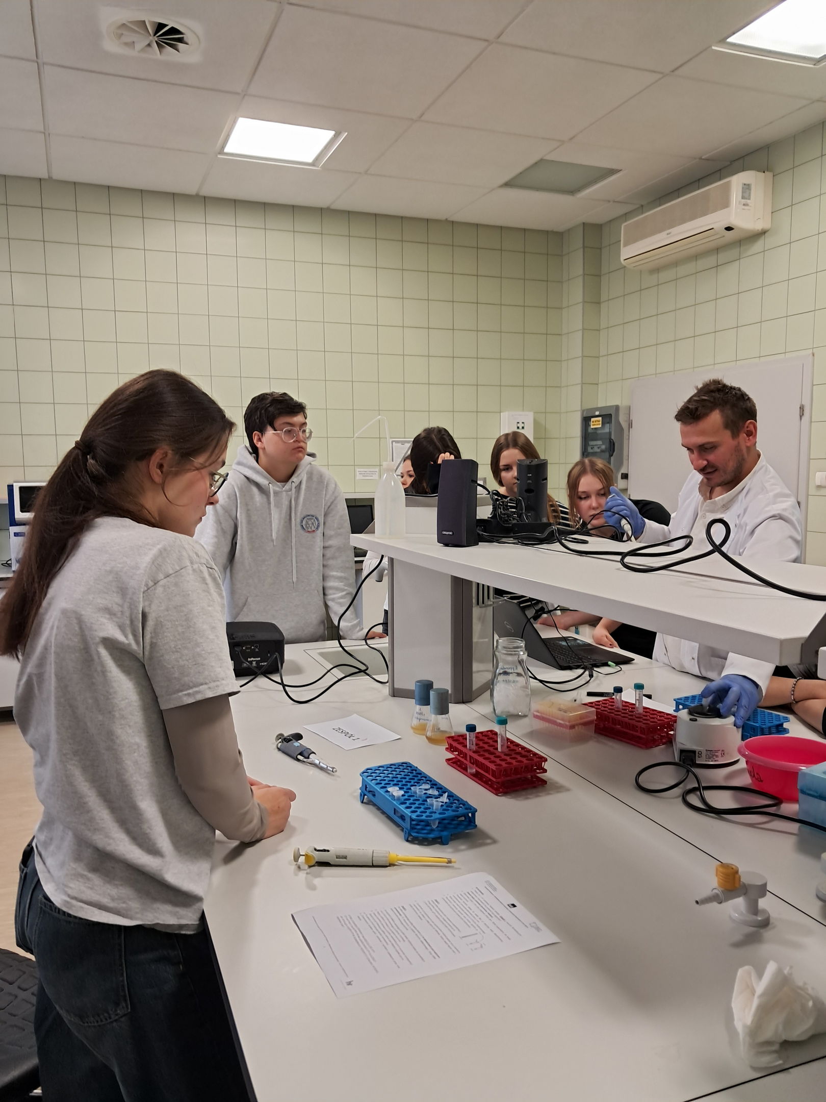 W dniu 17.10.2025 r. odbyły się kolejne warsztaty laboratoryjne dla uczniów szkół średnich. Tym razem uczestniczyli w nich uczniowie z Liceum Ogólnokształcącego im. Pauli Montal Sióstr Pijarek w Rzeszowie.