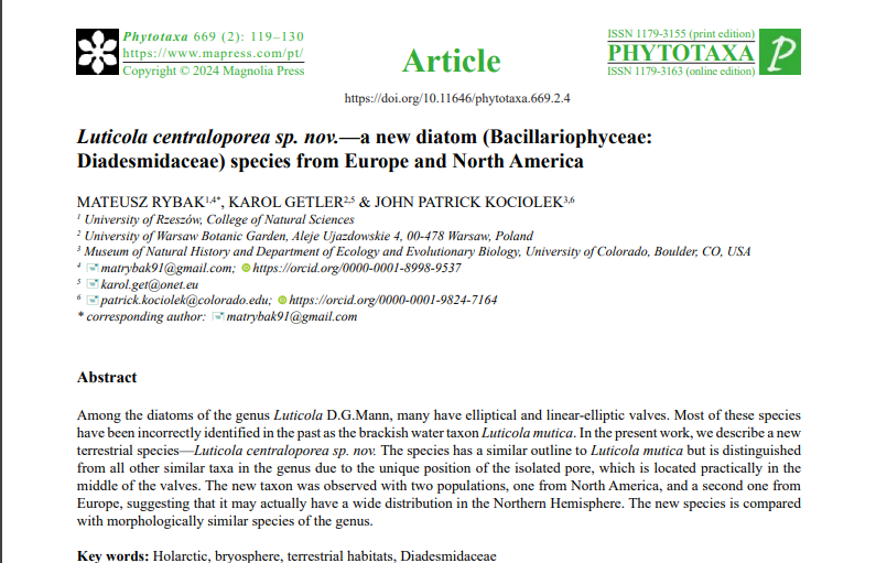 W październiku tego roku w czasopiśmie Phytotaxa opublikowany został opis nowego dla nauki gatunki okrzemki (grupa jednokomórkowych glonów) odkryty przez dra Matusza Rybaka wraz z absolwentem kierunku Biologia - panem Karolem Getlerem. Gatunek został zaobserwowany w próbach lądowych mszaków pochodzących z Wisconisn, USA oraz  wnętrza szklarni Ogrodu Botanicznego Uniwersytetu Warszawskiego.