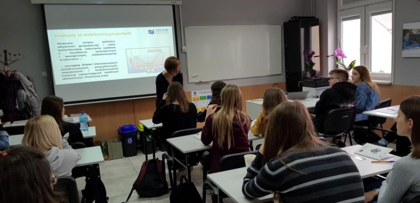 W dniu 26.02.2020 r. odbyły się kolejne warsztaty realizowane w ramach projektu „Uczelnie Szkołom - o finansach z NBP. Akademicki Portfel Wiedzy o Finansach”. Tym razem miały miejsce w Zespole Szkół im. ks. dra Jana Zwierza w Ropczycach. Pracownicy Instytutu Ekonomii i Finansów Uniwersytetu Rzeszowskiego w składzie: dr Magdalena Cyrek, mgr Magdalena Wiercioch oraz dr Piotr Cyrek przeprowadzili trzy warsztaty dotyczące planowania i realizacji kariery zawodowej, obrotu gotówkowego, bezgotówkowego i bezpieczeństwa dokonywania transakcji oraz głównych instytucji wpływających na stabilność ekonomiczną i finansową kraju. Młodzież chętnie uczestniczyła we wszystkich aktywnościach związanych z warsztatami.