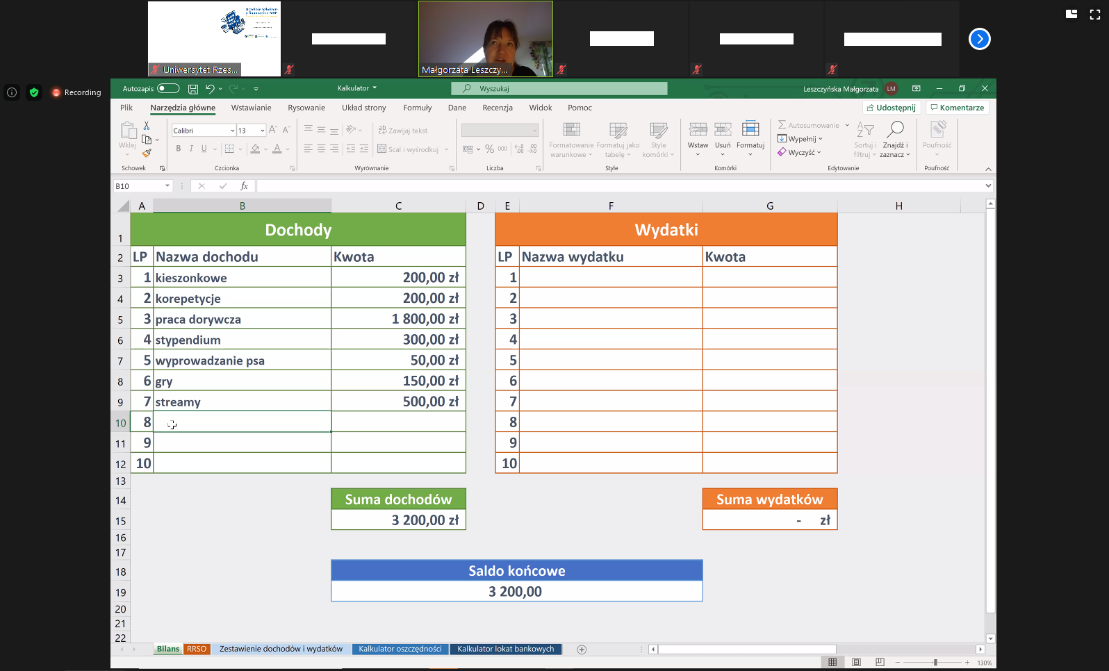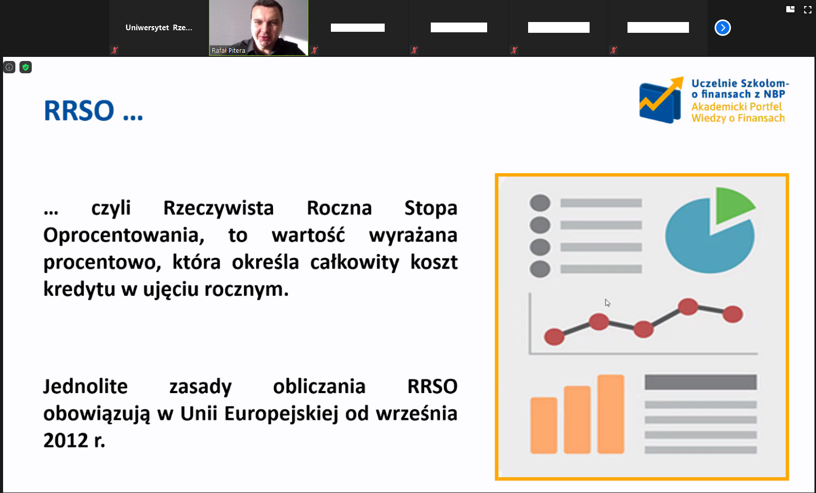 W dniu 18 listopada 2020 roku  przeprowadzone zostały kolejne warsztaty online w ramach drugiego bloku dla uczestników projektu „Uczelnie Szkołom – o finansach z NBP. Akademicki Portfel Wiedzy o Finansach”. Tym razem w spotkaniu na łączach internetowych uczestniczyli równolegle uczniowie z dwóch podkarpackich szkół średnich. Była to młodzież z Zespołu Szkół im. Aleksandra Fredry w Nienadowej oraz z Zespołu Szkół Publicznych w Rymanowie.