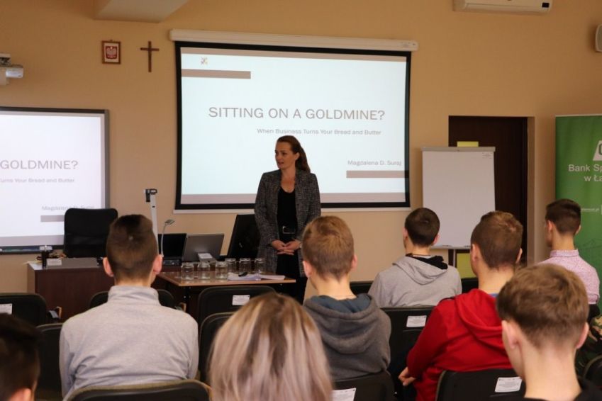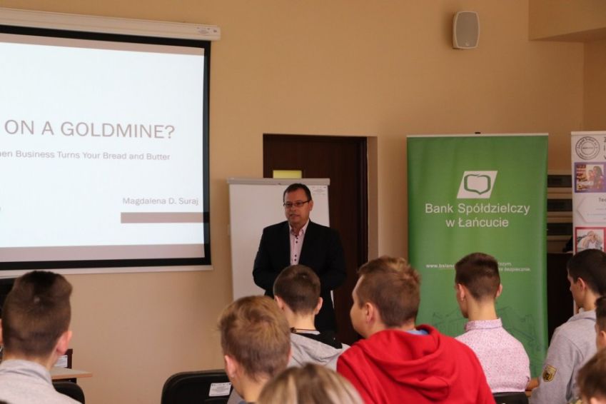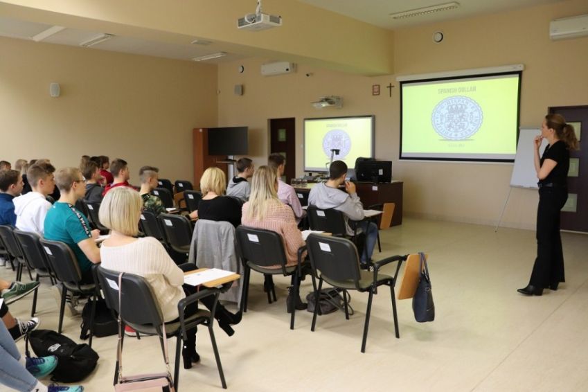Spotkanie uczniów szkół ponadpodstawowych powiatu łańcuckiego poprzedzało finał IV Powiatowego Konkursu Matematycznego w języku angielskim „I love numbers”. Warsztaty anglojęzyczne zatytułowane „Sitting on a goldmine? When business turns your bread and butter” przeprowadzone zostały przez mgr Magdalenę D. Suraj, pracownika Katedry Rynków Finansowych i Finansów Publicznych, Instytutu Ekonomii i Finansów UR.
