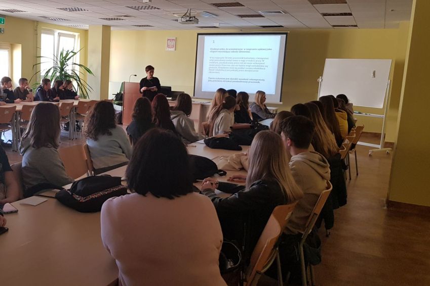 W pierwszej części,  dr Piotr Cyrek, omawiał perspektywy edukacyjne uczniów, ich aspiracje, możliwości i bariery na ścieżce kreowania własnego kapitału. Młodzież ujawniła wiele aktywności w tworzeniu pomysłów na osiągnięcie w przyszłości satysfakcjonujących dochodów.
